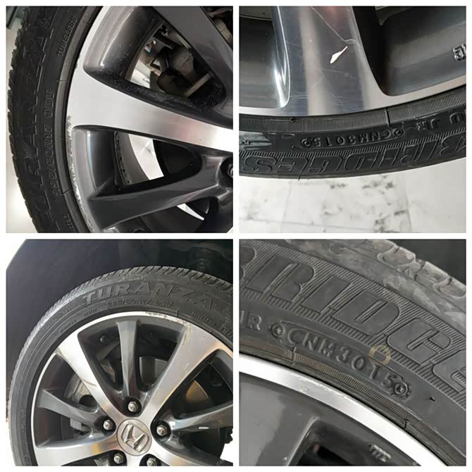 轮胎日期是2015年的,暂不必更换,运气很好,又能省一大笔钱,只是钢圈有不同程度的剐蹭。