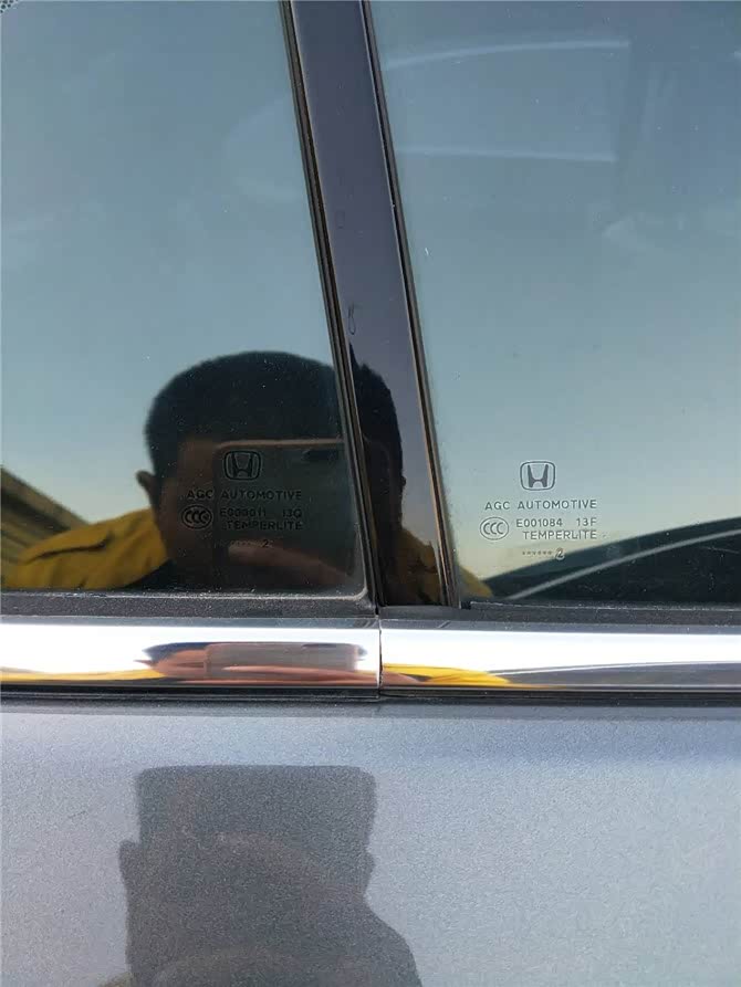 除后挡风玻璃外,其它玻璃生产日期都是2012年生产的,后挡风2011年生产的,车子是2012年2月生产下线。2011的玻璃也能说得过去,也符合生产的标准,外观件也没什么大事就是小磕碰。