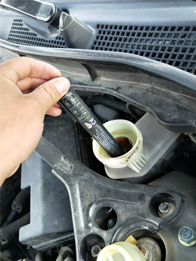 刹车油含水量为零,但是看内部有点脏都发黑了,油液中污渍过多,容易堵塞管路,影响制动效果。建议及时更换。另外,需要知道的是,制动油的容积会随着温度的变化而变化。因此刹车油储油壶上设有通气孔,从该孔被吸进的空气里含有水分或杂质,造成油液脏污或含水量偏高问题。油液中水分含量过高,汽车长时间行驶制动时,制动系统的温度升高,制动管路容易产生气阻,从而造成制动力下降或制动失灵的可能。因此为了行车安全,刹车油必须定期检查或更换。