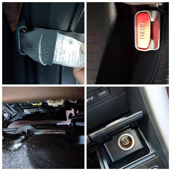安全带日期正常符合生产日期,安全带卡扣内部无污渍,座椅螺丝无拆卸底部无泥沙正常落灰,点烟器内部无生锈,可以排除水淹。