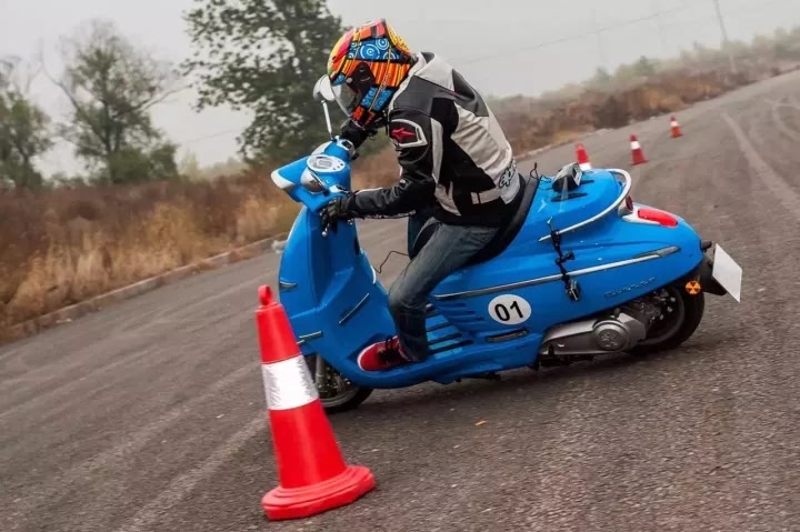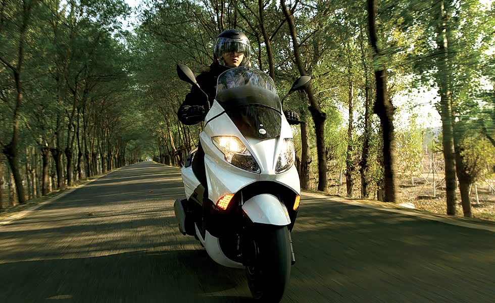 涅槃在不久之前对它进行了一次简短的试驾,初步体验感觉动力与外表不符,原因就来自于被它柔弱的外边欺骗了,看似不雄壮的外表下却安装了一颗动力十足的心脏,最大功率9.6Kw,最大扭矩13N·m,动力数据放在这个排量级别踏板中可以傲视群雄了,80km/h之前一直维持强烈的加速感,同时车身没有不稳定的感觉,总体来讲车身较为灵活,操控和动力都没挑。