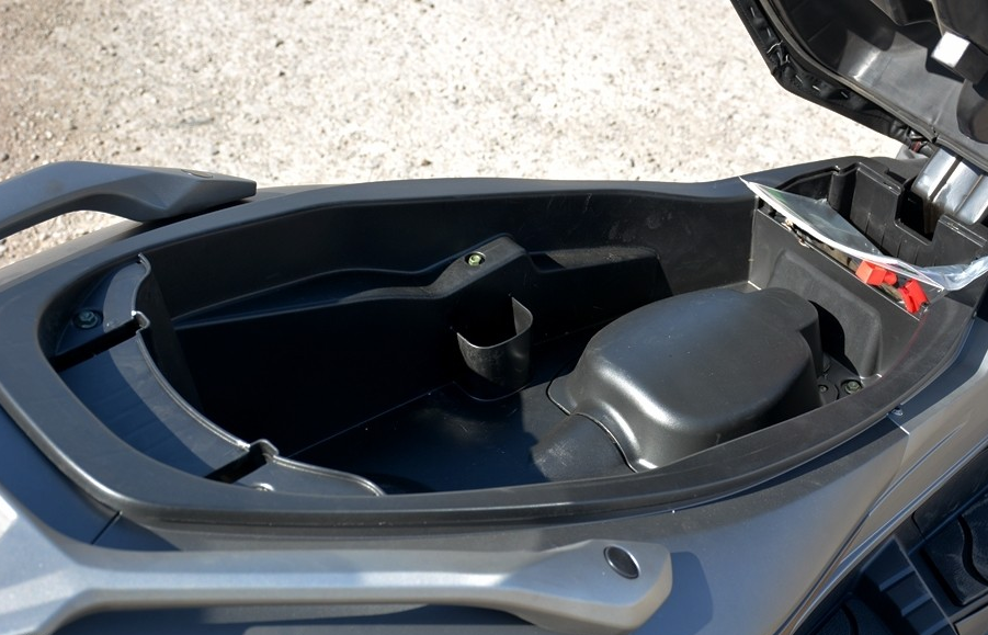 整车看上去非常显大气,如果不说这是一辆250cc级别的车,相信很少有人能猜到,这种大气的感觉不仅仅是看上去的效果,即使两名重量级选手坐在车上,也并不显得局促,储物箱空间完全可以放下一顶全盔和一顶3/4盔,容积量放在这个级别里已经是相当优秀的了。