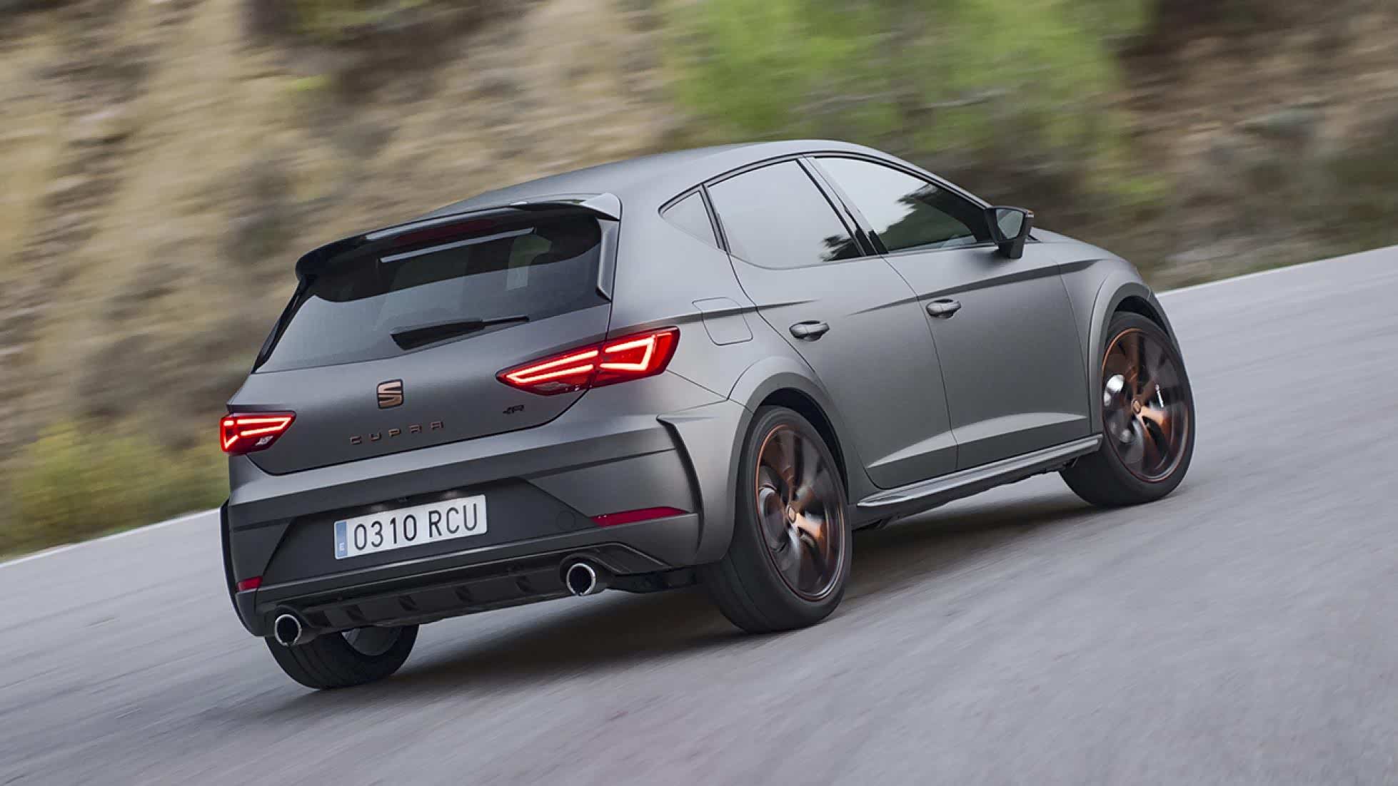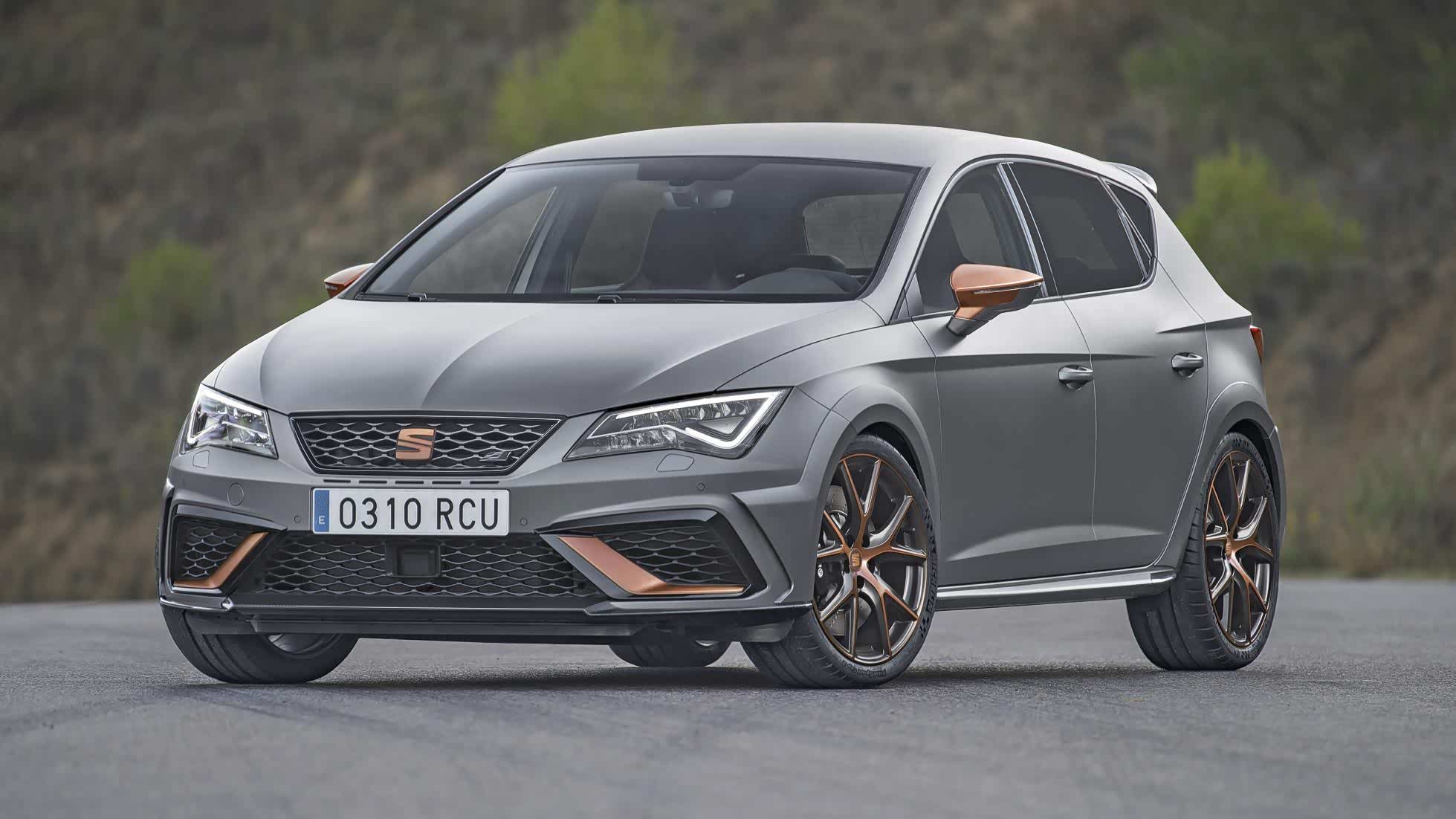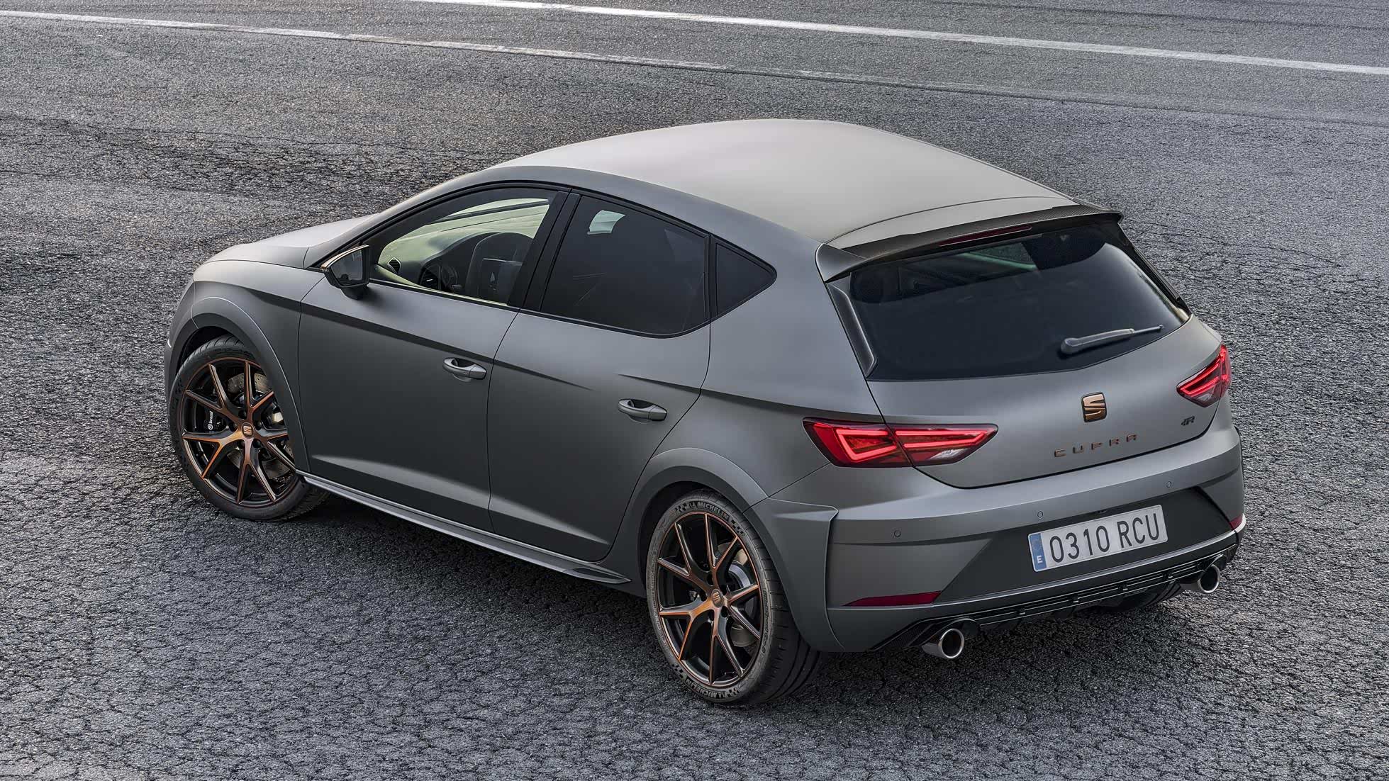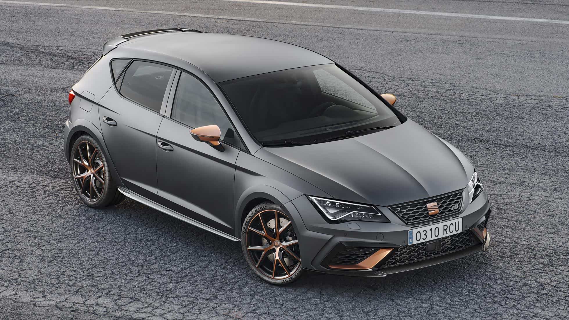 310匹前驱钢炮,西雅特Leon Cupra R,799台限量版。极速248km/h,0-100km/h加速5.8秒。电子差速器和标准版Cupra一致,限量版车型以外观变化为主。哑光灰车身色、Brembo制动系统、米其林PS Cup2高性能胎、碳纤维后扰流,车内采用运动型座椅以及更多alcantara铺装。整车外观及内饰多处采用金色装饰件,包括轮毂、后视镜壳、前保和logo等。Cupra R以6速手动为标配,可选装DSG变速箱,但DSG版本动力被限制在300匹。