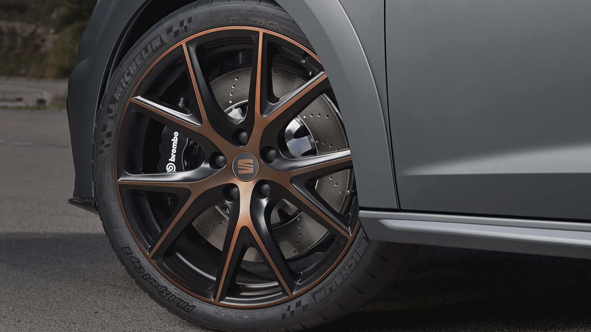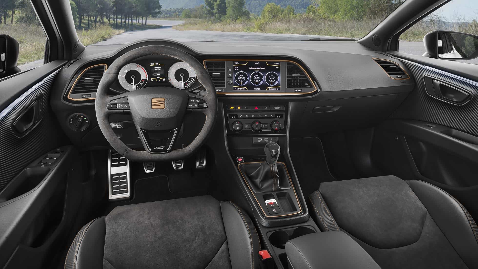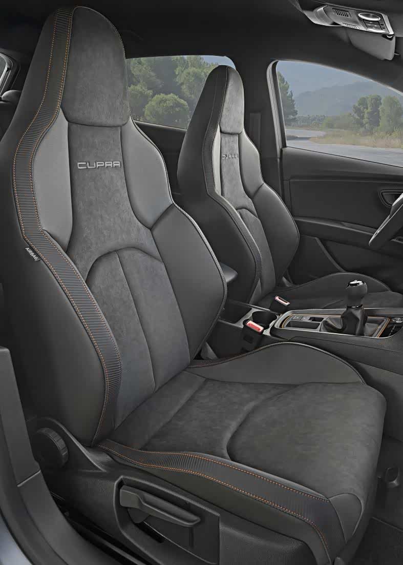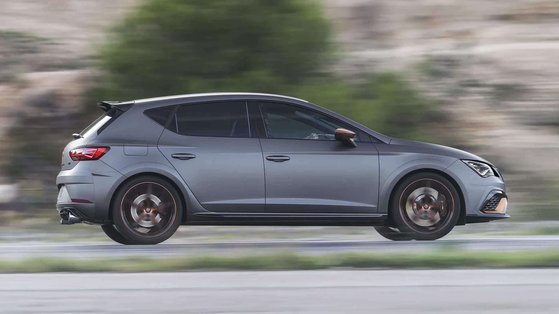 310匹前驱钢炮,西雅特Leon Cupra R,799台限量版。极速248km/h,0-100km/h加速5.8秒。电子差速器和标准版Cupra一致,限量版车型以外观变化为主。哑光灰车身色、Brembo制动系统、米其林PS Cup2高性能胎、碳纤维后扰流,车内采用运动型座椅以及更多alcantara铺装。整车外观及内饰多处采用金色装饰件,包括轮毂、后视镜壳、前保和logo等。Cupra R以6速手动为标配,可选装DSG变速箱,但DSG版本动力被限制在300匹。