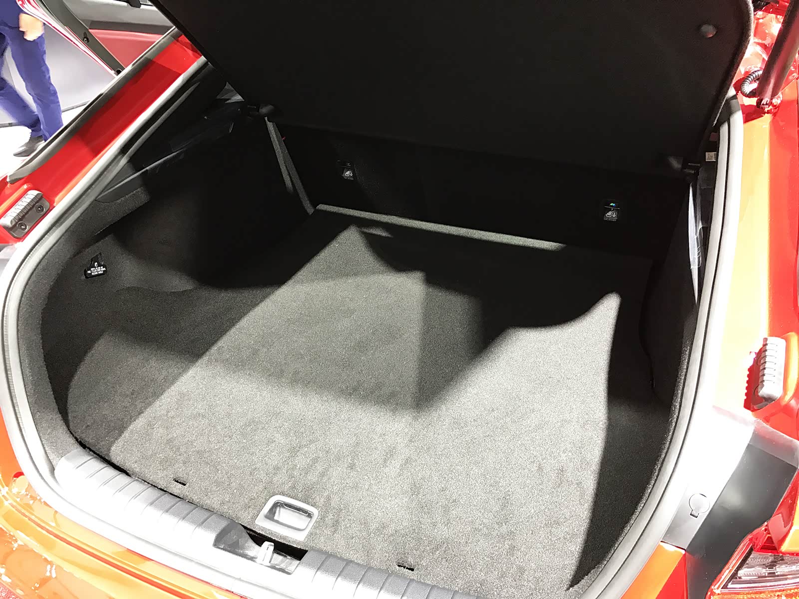 然而起亚还是为Stinger的后排准备了两个与前排同款的圆形空调出风口,算是给后排增色了些许,下方还有12V电源和USB充电接口。头顶上方的天窗不是全景天窗,但在常规天窗里面算是面积比较大的。走到车尾,打开掀背式的后备箱,会发现这后备箱倒是大得令人惊喜。