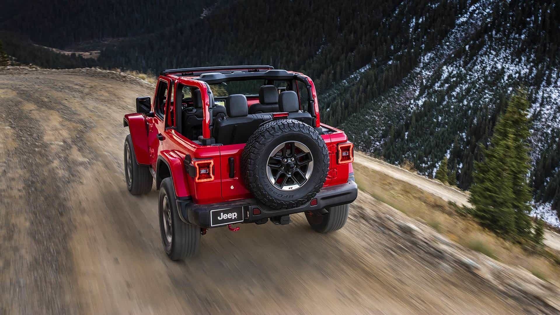 在车辆尾部,新一代Jeep牧马人的后窗面积更大,后雨刮器则隐藏在后备胎后方。而且在后备胎中央还配备了倒车摄像头。在更换备胎之前需要进行一次拆卸。而车辆后部的空气动力学效应也得到了改善,使得风阻系数降低了百分之九。