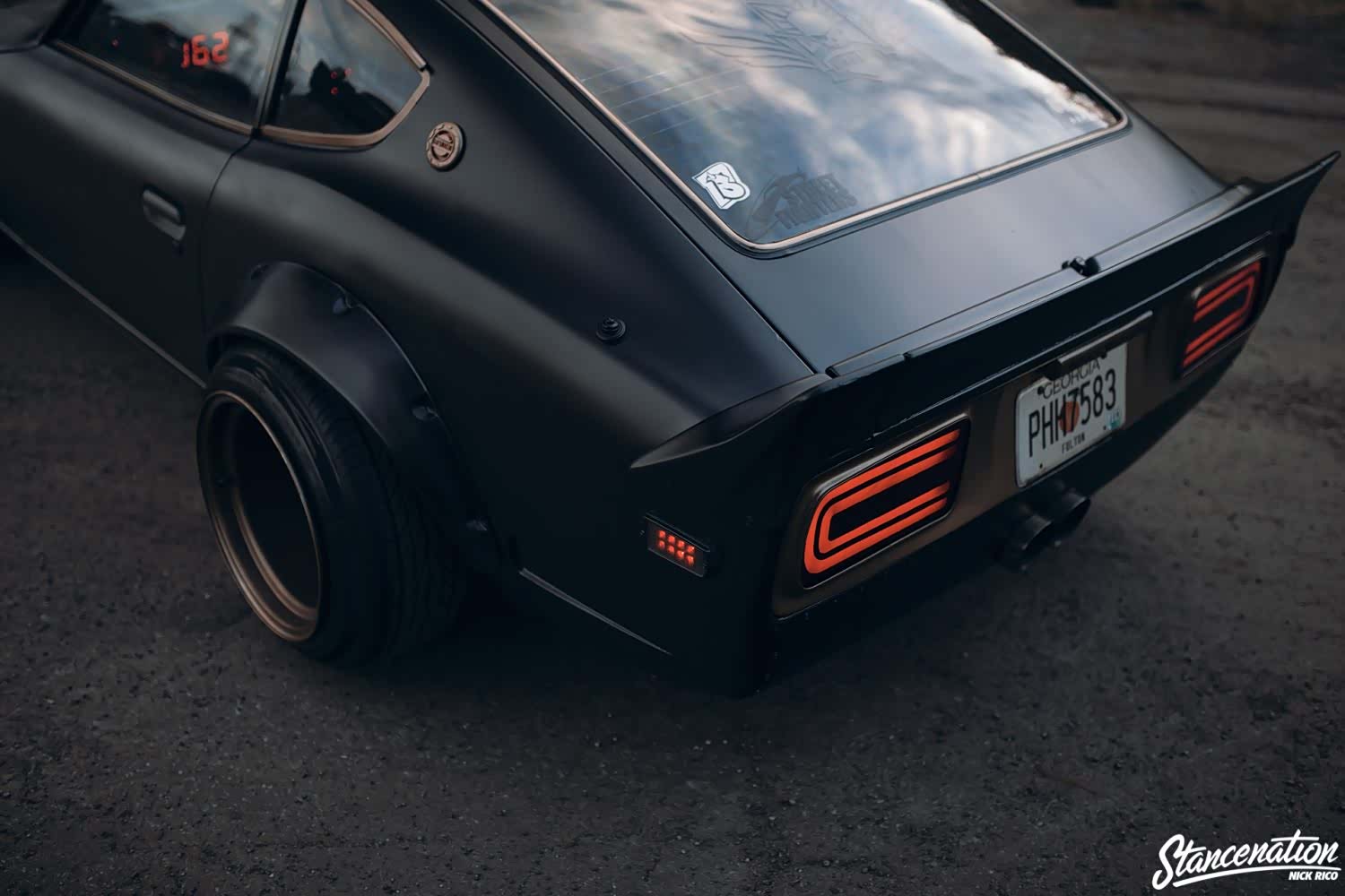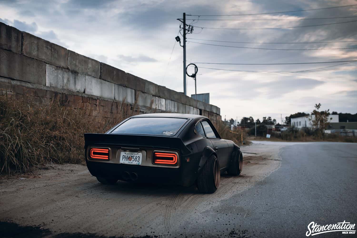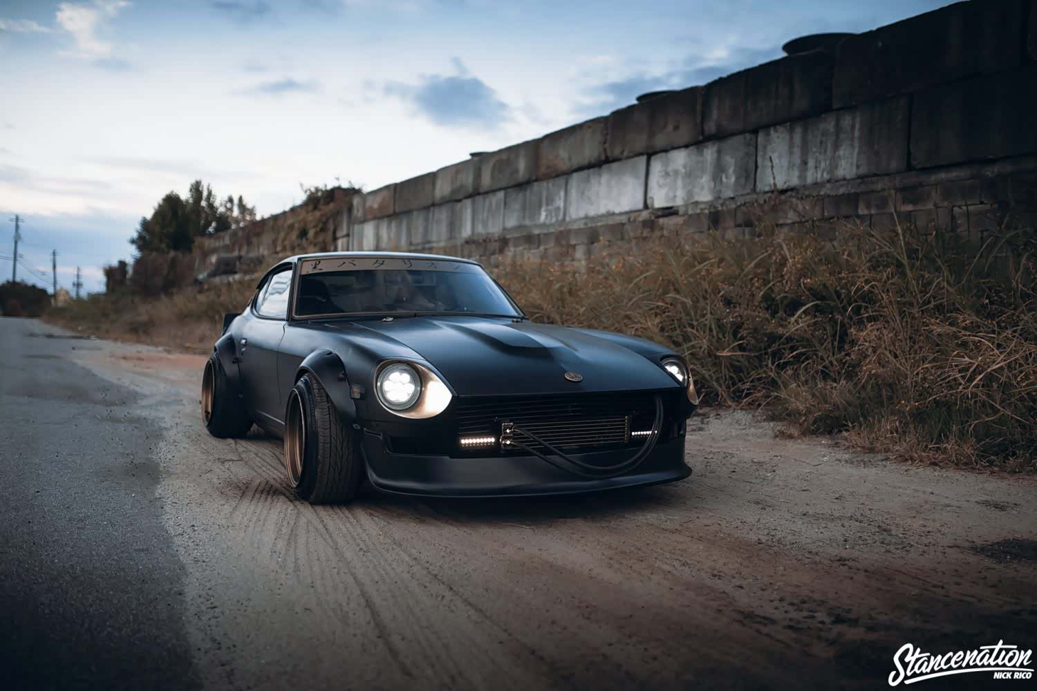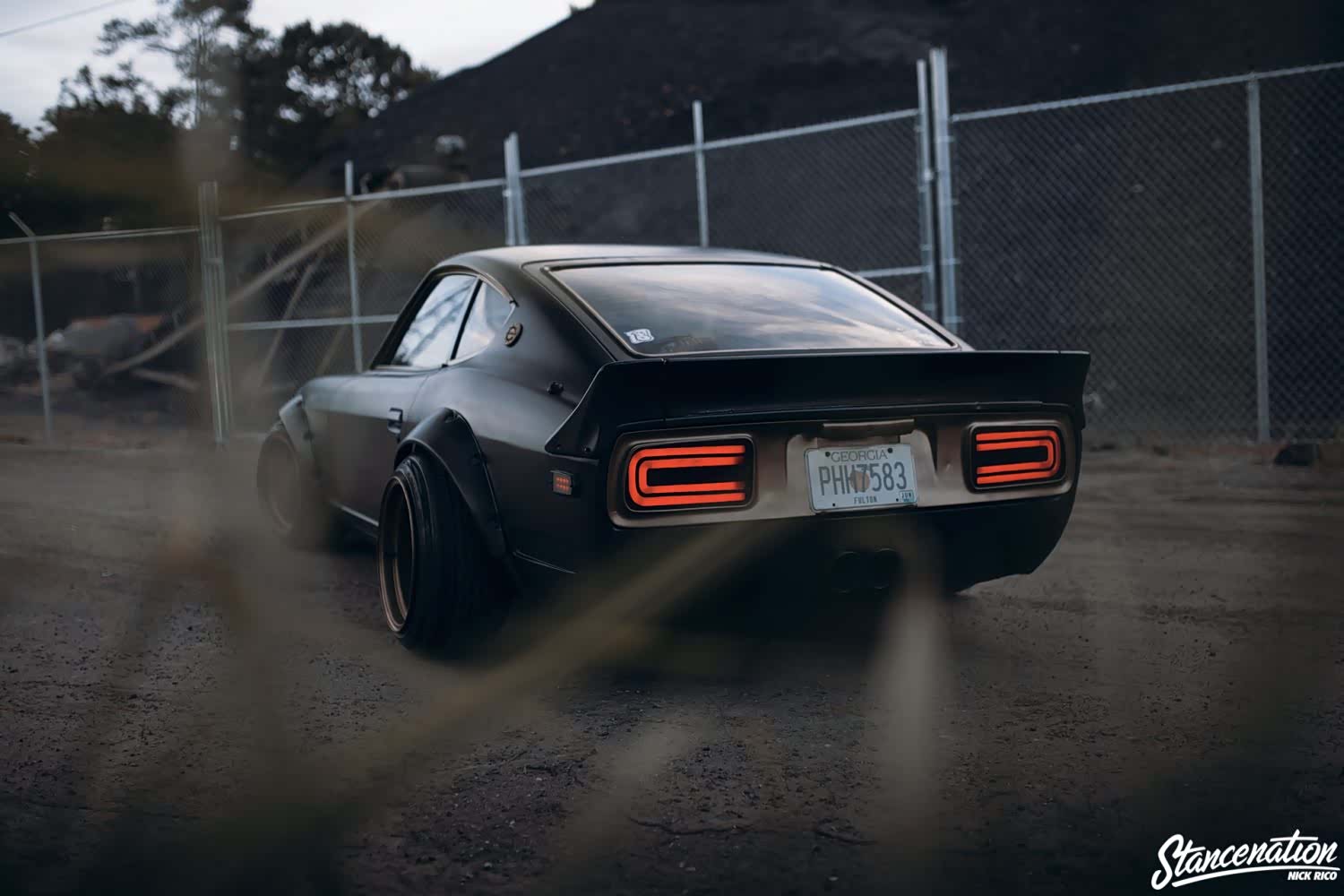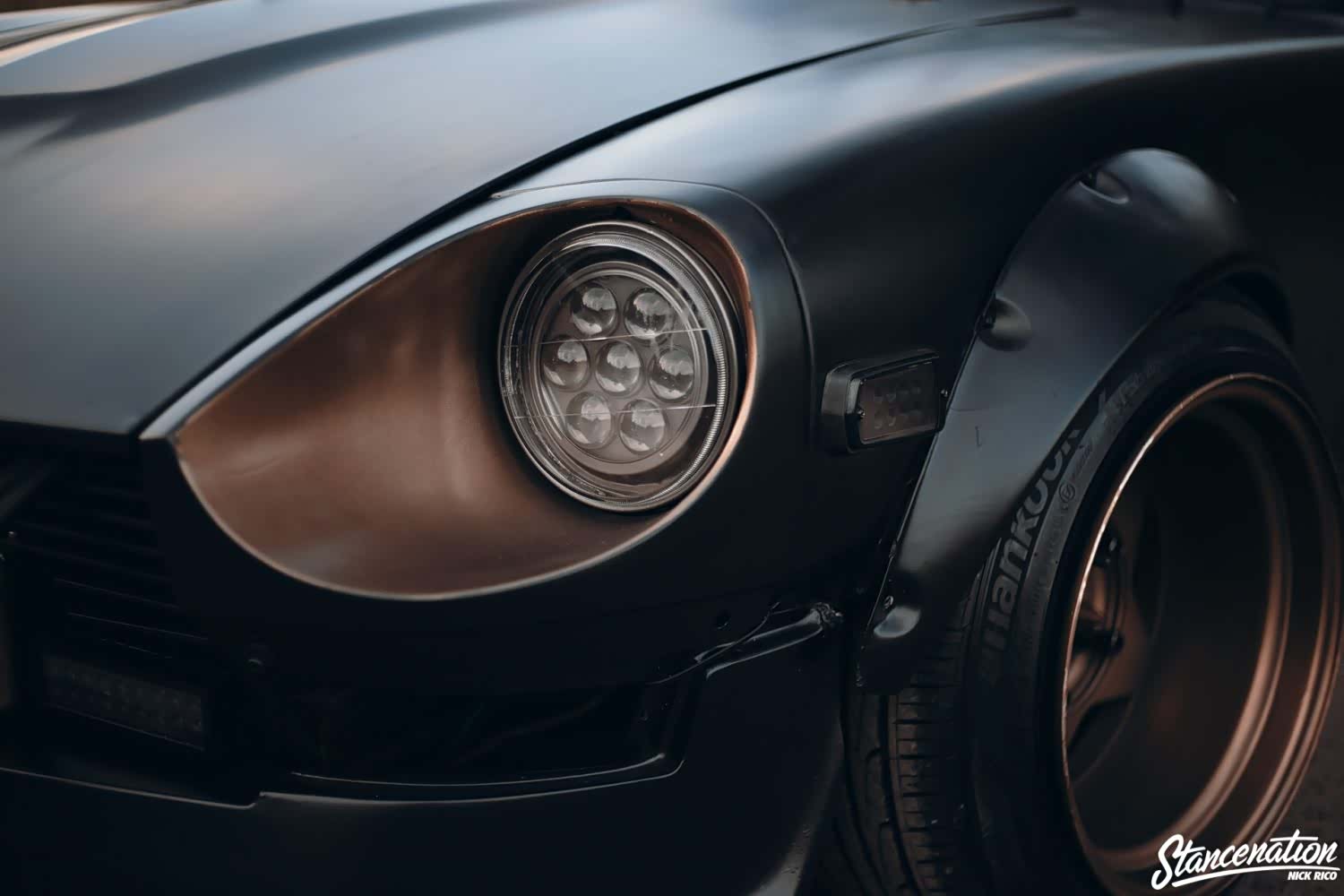 今天小编就看到了一辆来自美国的"恶魔Z",车主Scott Koehler和他的朋友将这辆240Z从报废车堆里将它复活了。它被车主修复之后喷上了一层哑光的黑色车漆,灯罩位置则喷上了古铜色,搭配7龙珠大灯显得又精致又特别。