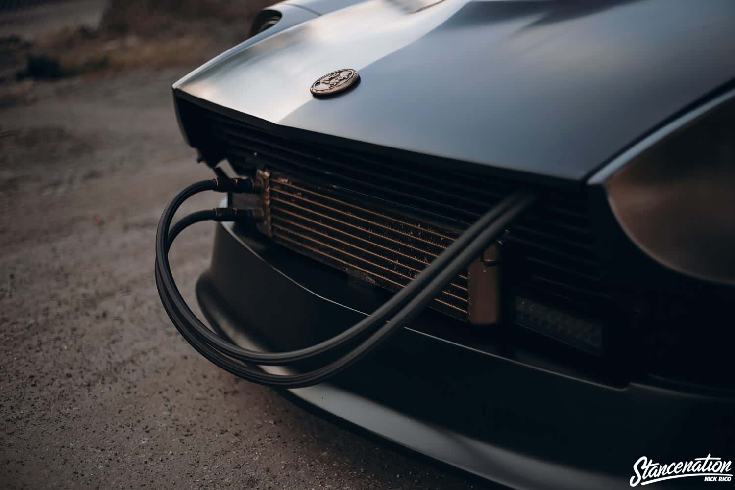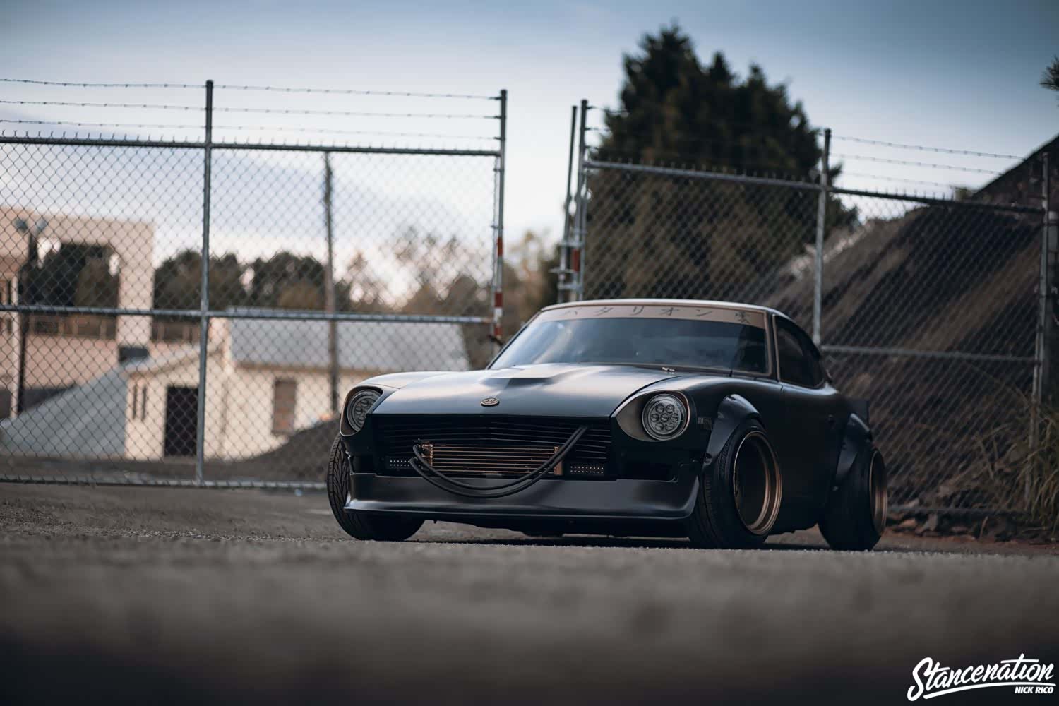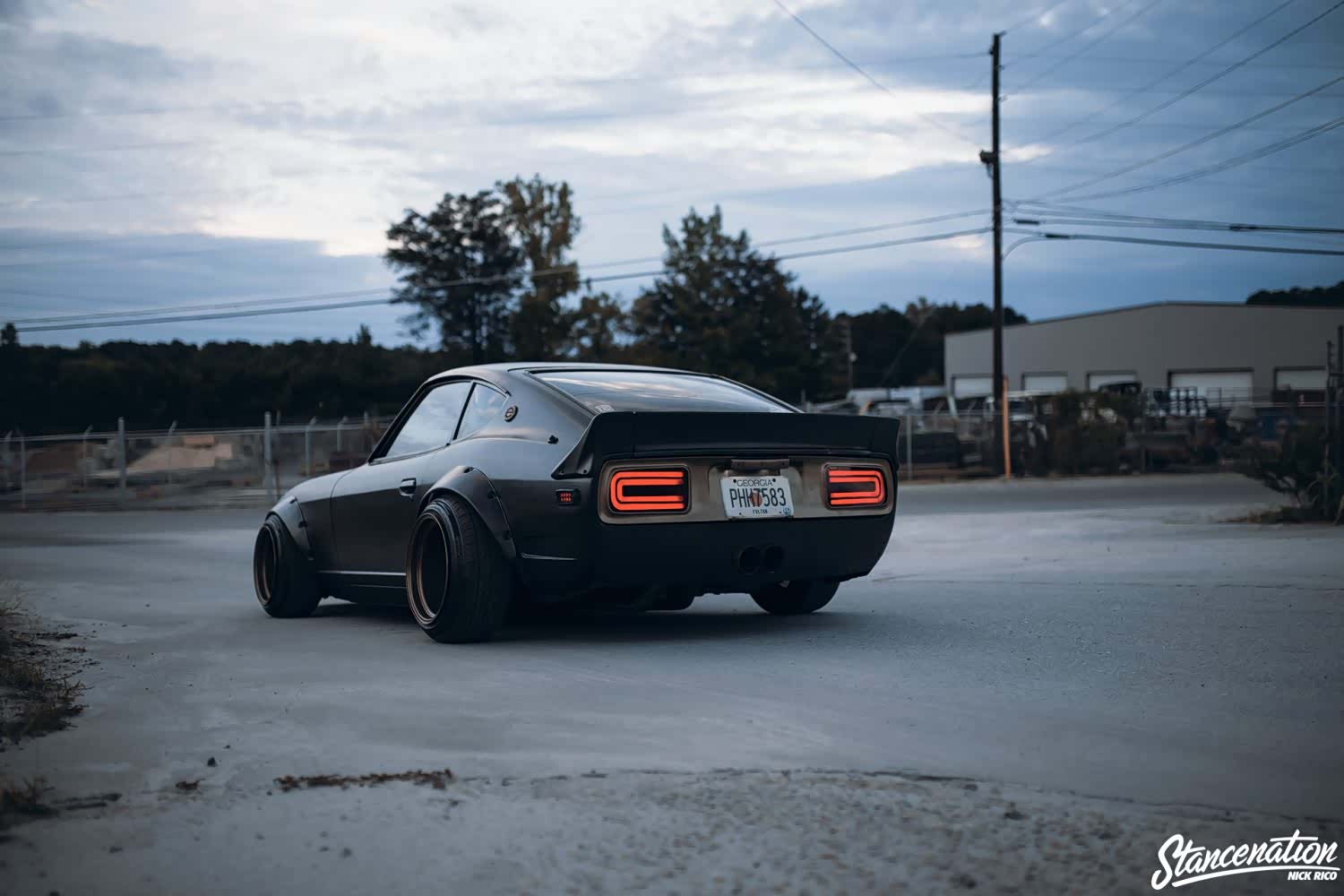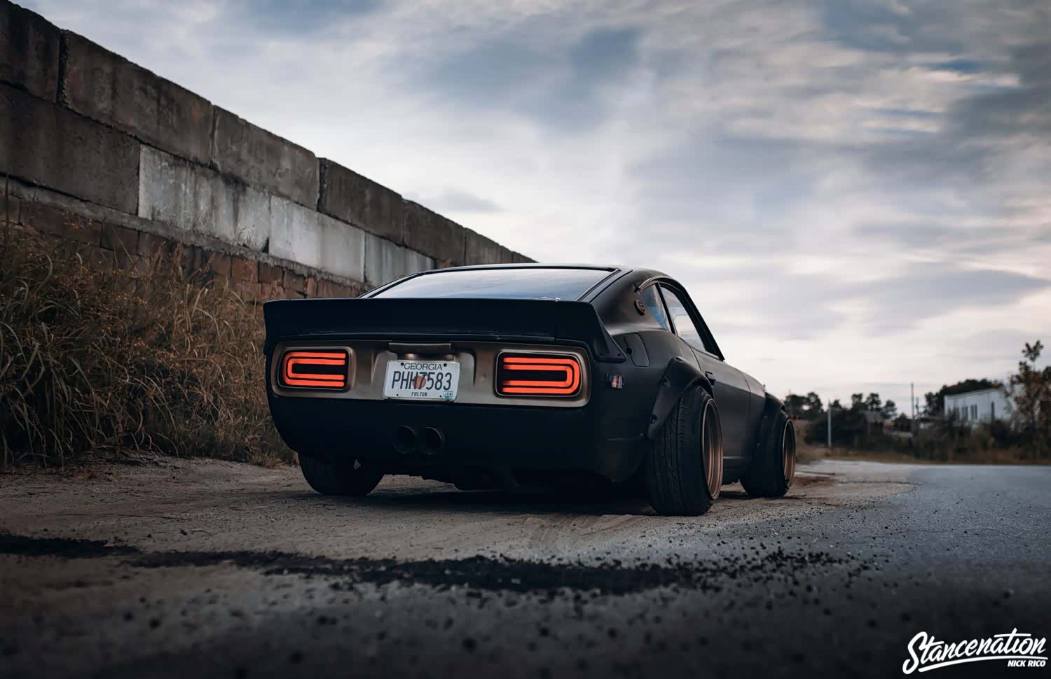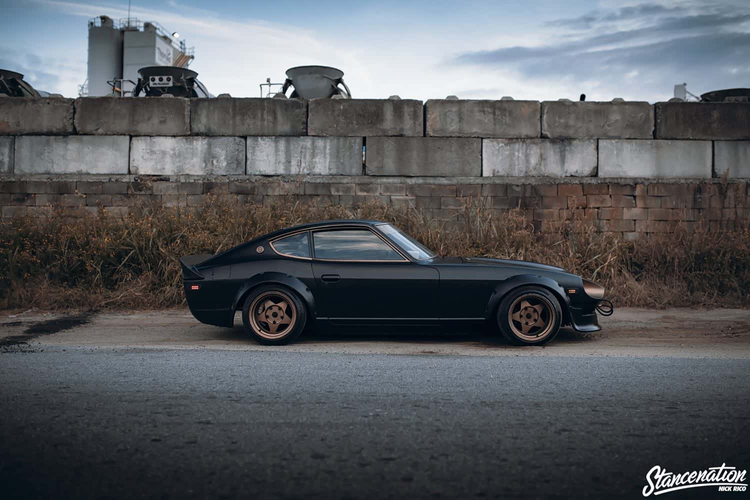 今天小编就看到了一辆来自美国的"恶魔Z",车主Scott Koehler和他的朋友将这辆240Z从报废车堆里将它复活了。它被车主修复之后喷上了一层哑光的黑色车漆,灯罩位置则喷上了古铜色,搭配7龙珠大灯显得又精致又特别。