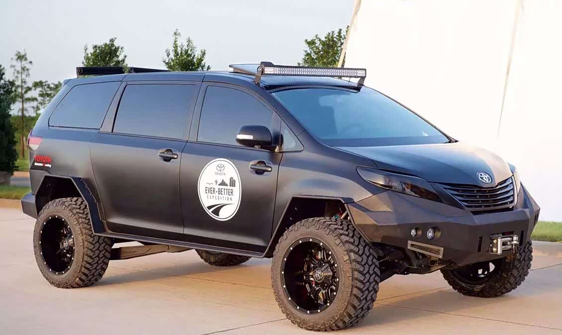 当然也有人用MPV作越野改装的尝试,下面的这辆丰田塞纳看起来也是越野范儿十足吧