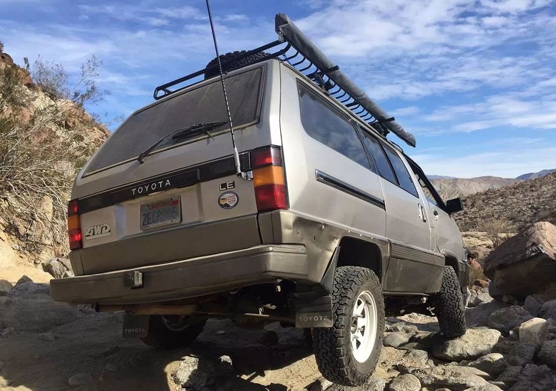 上图这台1988年出厂的丰田MasterAceSurf(HiAce的后续车型),从制造厂出来的时候就带着四驱系统。由于这款车的大部分机械结构包括悬架部件都来自海拉克斯,而且还有电子调节悬架(TEMS)车型可选,所以稍加改造之后,它也有非常不错的越野性能。