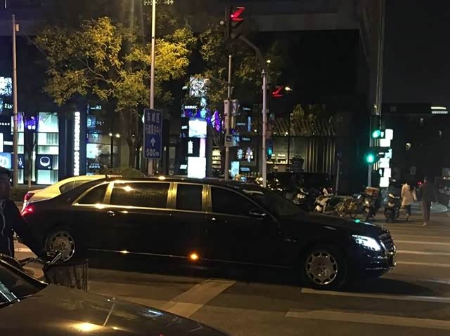 国内首辆黄牌奔驰普尔曼,左边刹车灯上面是Maybach迈巴赫的英文字母,右边刹车灯上面是型号S600,全球最长的量产乘用车之一,这车和普通的加长林肯不一样,这是奔驰原厂车型,全长约6.5米,比迈巴赫S600长了1米左右,比以前的W240迈巴赫62还长30厘米,所以这辆车也继承了迈巴赫62的一大特点“黄牌”,这个黄牌的数字很普通,也不是什么连号车牌。