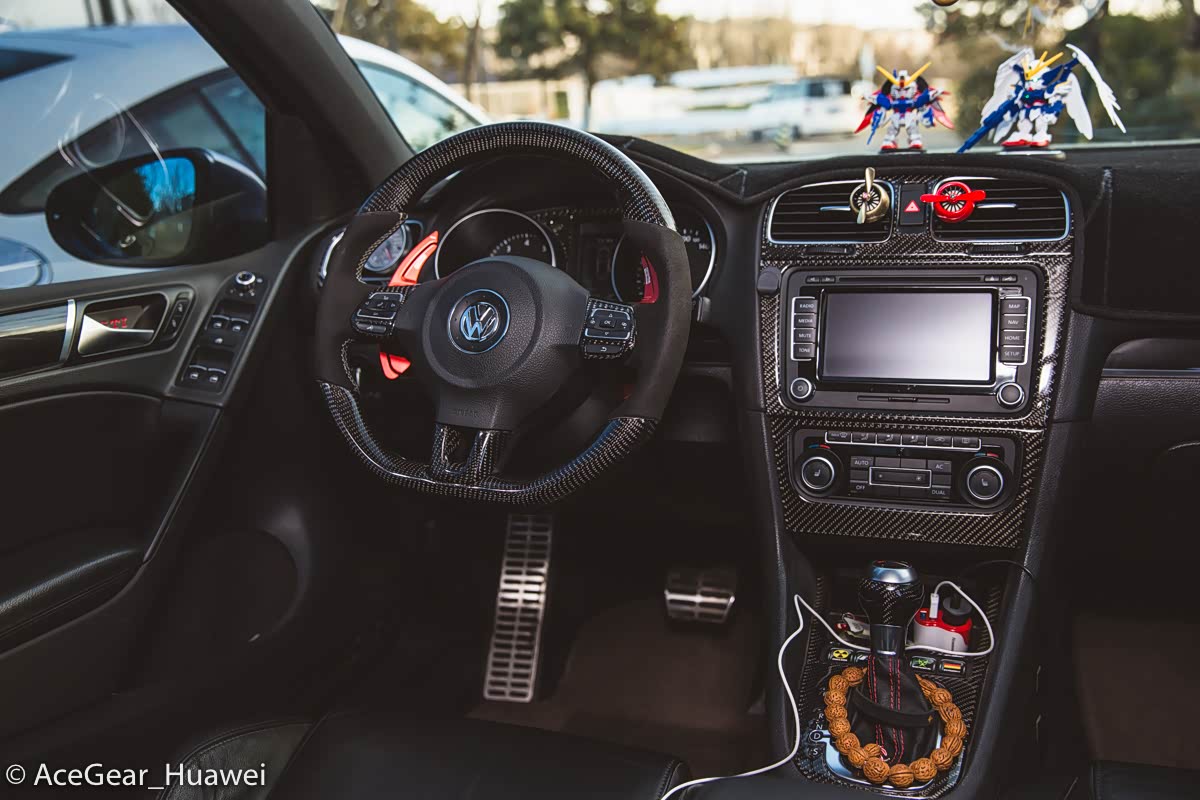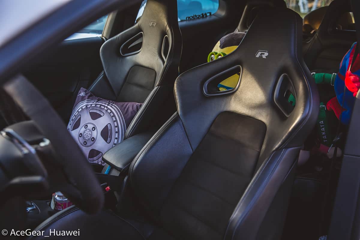 虽然是一台GTI,但车主把小黑完完整整的打扮成了一台高R的模样,高R前后杠和侧裙,后碳纤维尾唇,碳纤维尾翼,奶牛中出全段排气,这相似度,基本傻傻分不清楚了。特别值得说的是这前后大灯,车主特意提到,这都是原装高R的进口灯,可不是国内高仿的。我估计说这话的时候,车主的心都在滴血。不过都是爱车之人,为了车,谁还没剁过几双手呢,对吧。