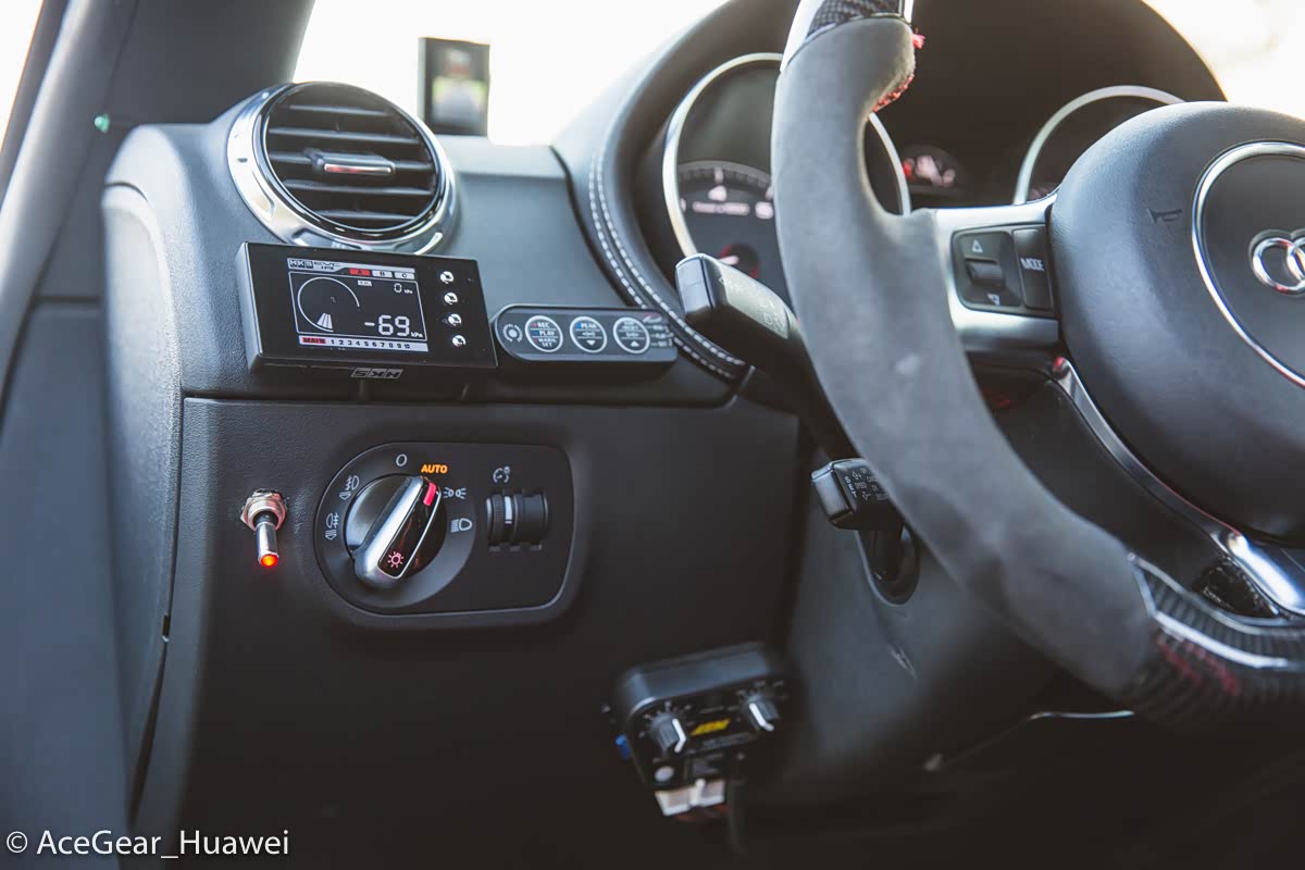 相比较之下,这台TT的机舱就略显朴素啊,可不要被迷惑了,看似简单,其实好东西可不少呢。之前提到过,这台车更换了盖瑞特GTX2867R涡轮,同样配套了JDC定制双吹芭蕉和钛合金头段,CTS进气套件,APR油泵,HKS EVC涡控,RS4喷油嘴,NGK8度竞技火花塞和红头点火,HEINZ-HDP特调ECU TCU+偏时点火等等,实在是太多了。怎么样,都是好东西吧,这些东西凑在一起,能迸发出多大的马力,只能靠自行脑补了,名副其实的低调的奢华啊。