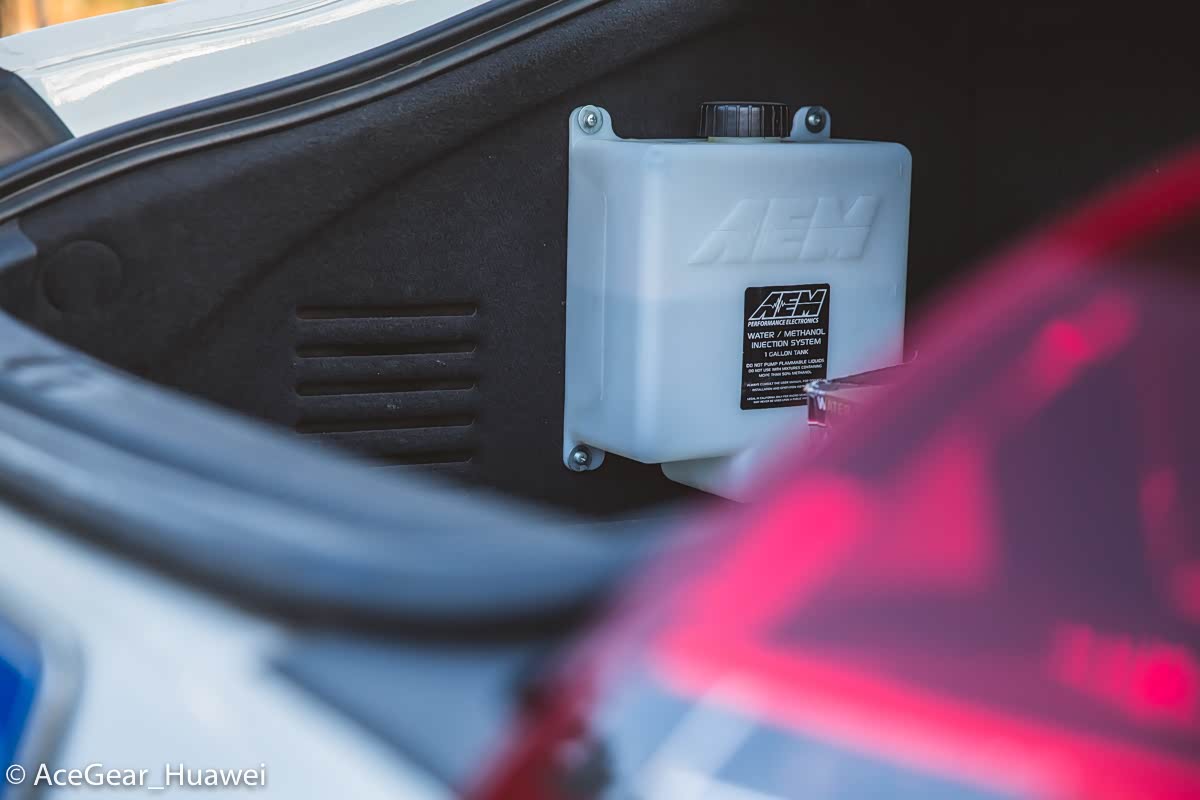 这个东西,还是得单独说一下的,AEM水喷装置。水喷这东西,危险又充满诱惑~危险的是,把甲醇/乙醇+水的混合物喷射到发动机进气系统内的隐患。诱惑的是那源源不断的动力和完美的抗热衰减能力~曾几何时,车主从来没有想过会安装这么极限的产品。但是,随着酷暑以及对于几乎没有热衰减的动力渴求,还是走到了这一步。