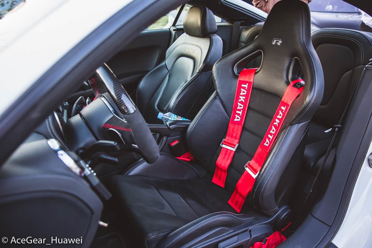 内饰相比前两台车,同样的定制碳纤维方向盘,只不过多了许多额外的控制器,看上去更加的赛道范儿了,至于那个红色的小开关,忘记问是什么功能了,难不成是一键起飞?开个玩笑,这只能今后有机会去问问车主了。和尚酷车主一样,更换了R20赛车座椅,加上红色TAKATA四点式安全带,让驾驶过程中,更加安全也更加充满激情。不过你们到底是多喜欢R20座椅啊,肯定是几个人预谋好的。