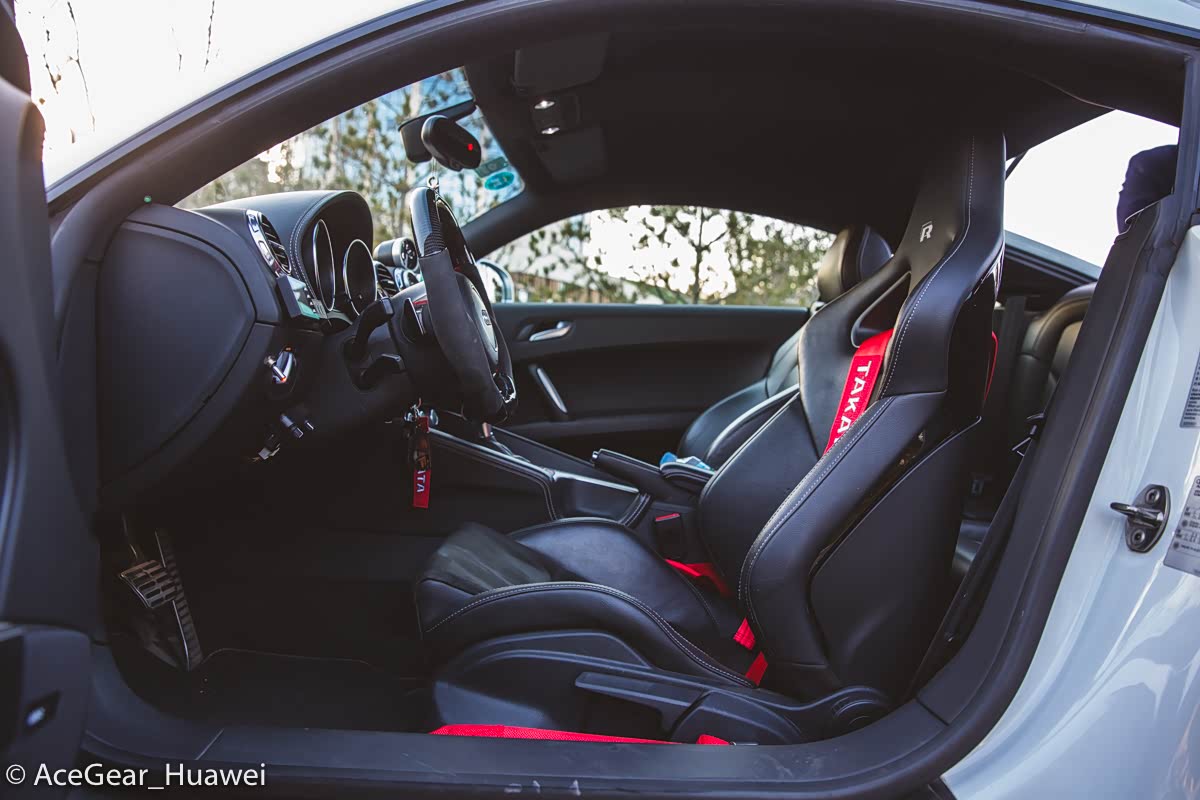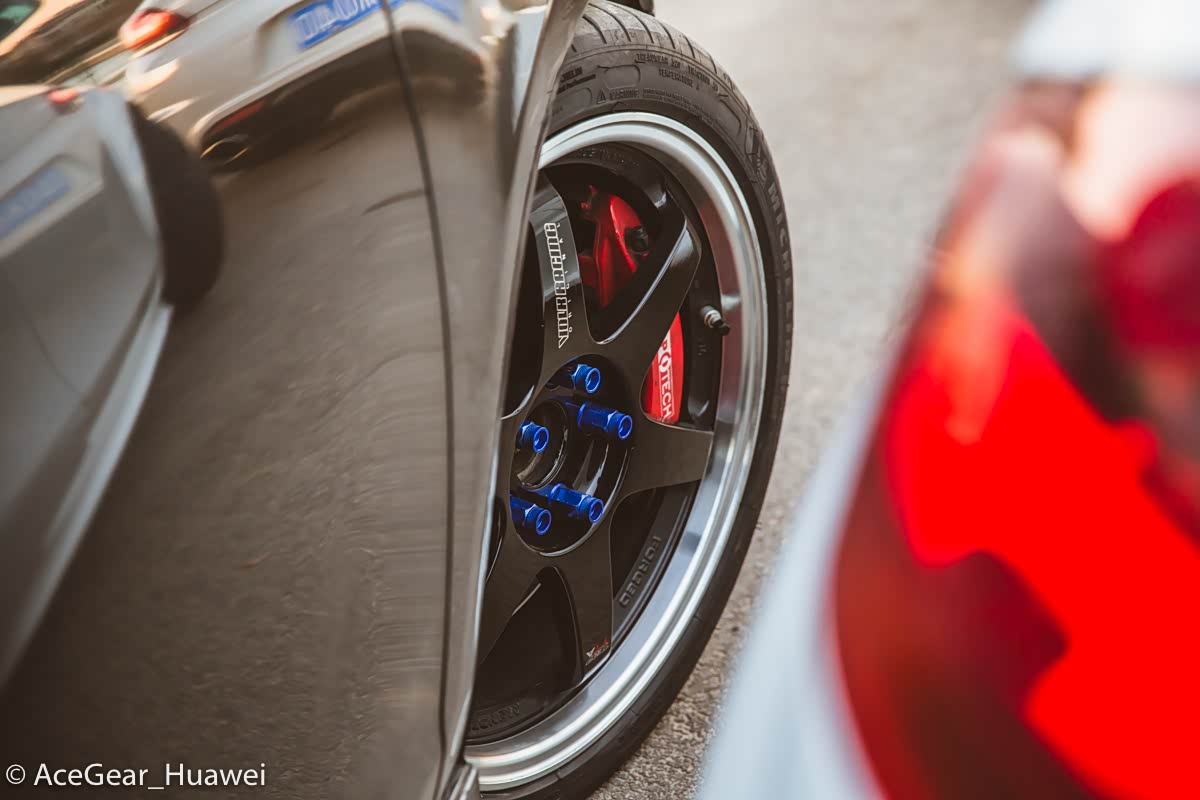 操控方面,同尚酷一样选择了御用品牌KW V3绞牙避震,轮毂则是和GTI一样选用了竞技风TE37RT Black Edition版本搭配BLOX锻造螺丝,这里有个小插曲,来的路上不小心墩了一下轮毂,可把车主心疼坏了,下车仔细检查了三圈,真的不夸张,三圈!可见这轮毂也价值不菲啊。言归正传,外观上这台TTS并没有太多改动,仅仅是更换了TTRS前杠,贴了个碳纤维鸭尾,很符合低调的特质。