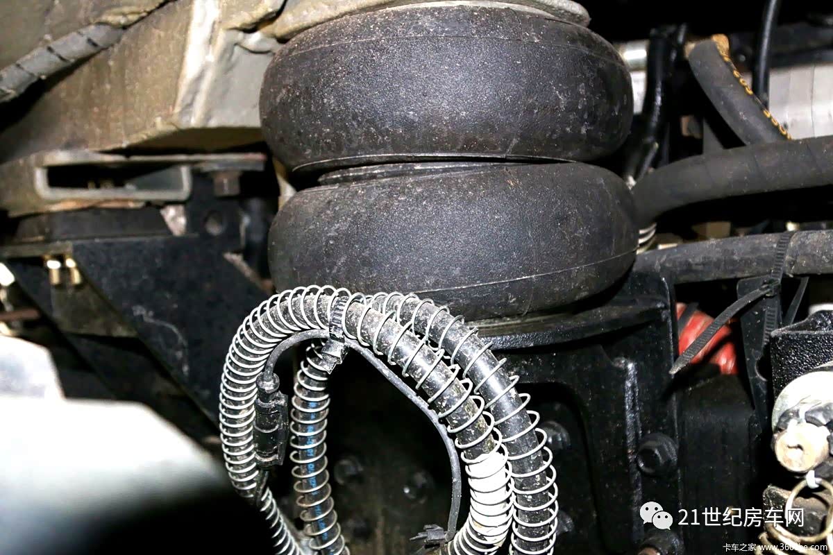 这样的设计有几个好处,首先是舒适性会大大提高,气囊悬浮设计可以过滤掉大部分颠簸,相当于上装和底盘直接多了一道减震系统。其次是平稳性更好,特别是在越野的时候,当底盘出现倾斜时,气囊的高度调节阀可以调节气囊的高度来平衡上装,减少上装的倾斜提高稳定性。