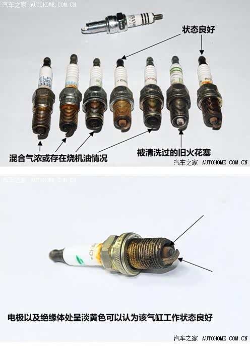 更换火花塞的过程中可以通过火花塞情况检查各气缸燃烧和积碳状况,也可以直观的通过火花塞孔观察活塞顶的积碳情况,酌情判断是否需要清理积碳或做其他的维修保养。(下图摘自车家)