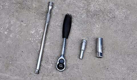 第五,取下火花塞套筒上的原火花塞,再套上新的火花塞。这里要非常注意,新火花塞电极部分不能磕碰,更不能摔落,电极摔变形后火花塞就没有用了;