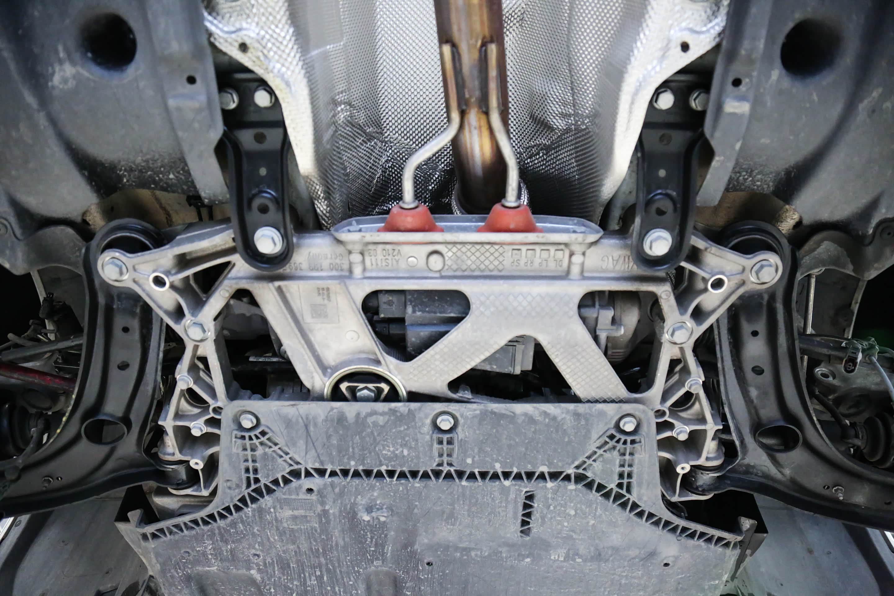 3、前副车架是全铝的,这是跟国产迈腾最大的不同,国产迈腾三厢为钢制,这里小编没有实拍过图,大家可以啪地下看看或者做保养时候让维修人员举升起来看看。两个好处:一铝制结构相比于钢,在保证相同强度的状态下,自身质量更轻;2、前副车架为铝,后副车架依旧为钢制应该是为了尽量平衡前后重量,所以,理论上蔚揽前后配置应该比迈腾更理想。