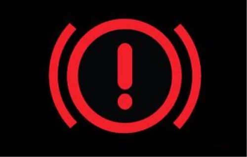 这个灯有点乱…有些车是圆圈里一个“P”,有些则是“!”,代表的意义都一样——刹车出问题。(有些车既有P又有感叹号,一般都是P代表手刹,感叹号代表故障)