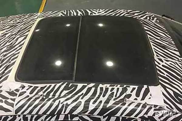 申报图回到产品层面,我们可以看到进入公告的这款新车采用了部分伪装,前脸包括格栅、保险杠及车尾大部分面积都为黑色未喷漆状态,车顶有明显的伪装贴纸覆盖,并配有一个类似早期双环汽车的标志,甚至大灯总成都没有采用之前亮相的威马EX5上的造型。但是通过车辆整体轮廓、外观造型、大灯预留位和基础的尾灯造型来看,这台黄海牌纯电动SUV无疑就是威马EX5,未来量产后自然也将会换装威马的全新LOGO。