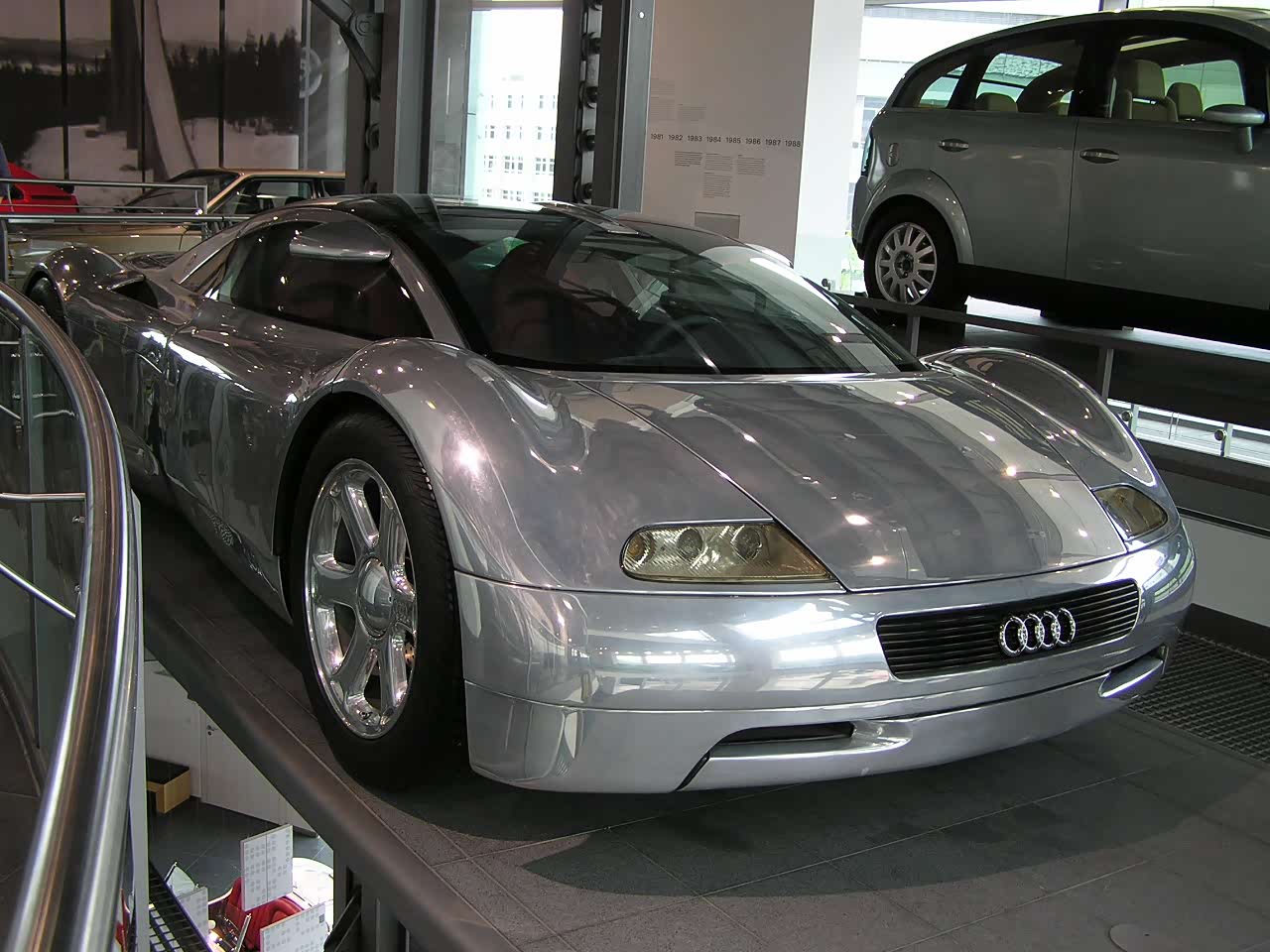 奥迪Avus Quattro概念车作为奥迪铝合金车身框架的开山鼻祖,其曾在1991年的东京车展上发布了一款引人注目的Avus Quattro概念跑车,该车重量仅为1250公斤,配备有一台6.0L W12发动机,在502hp的输出功率和四驱系统的帮助下,这款车从0加速至100km/h仅需3秒,极速可达334km/h,并实现了奥迪期望的低重量与高功率的设计目标,这样的数据在当今的超跑中也是拿得出手的。