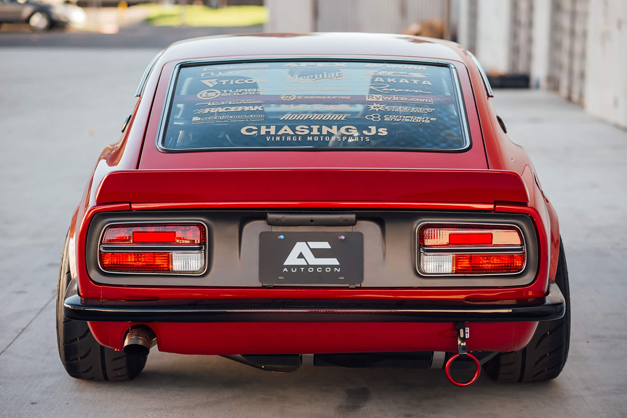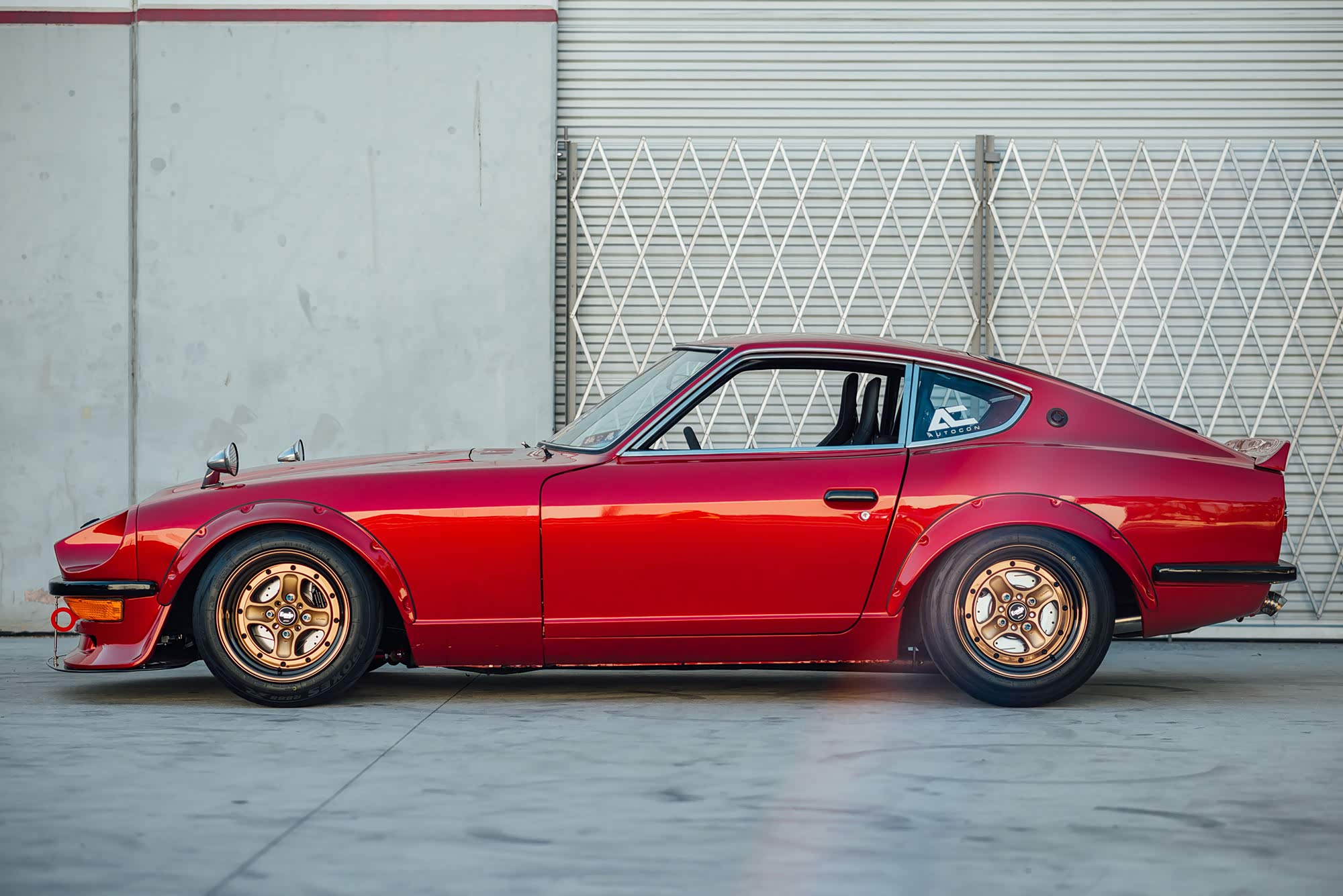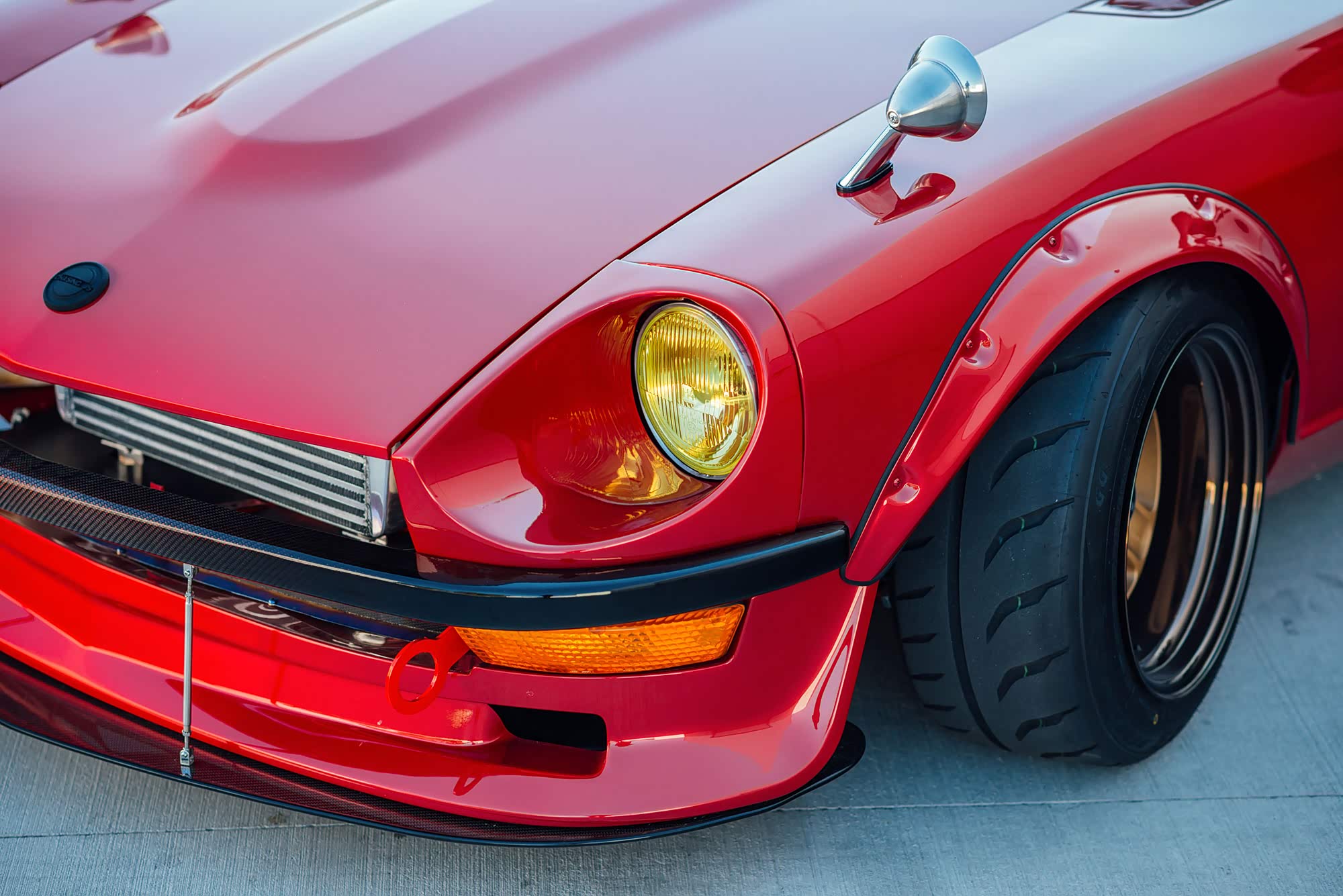 装在翼子板上的后视镜,是那个年代日系车的标志之一,而且复古风味十足。来自240ZG的轮眉,是否看起来与《湾岸Midnight》里面那部恶魔Z一模一样呢?