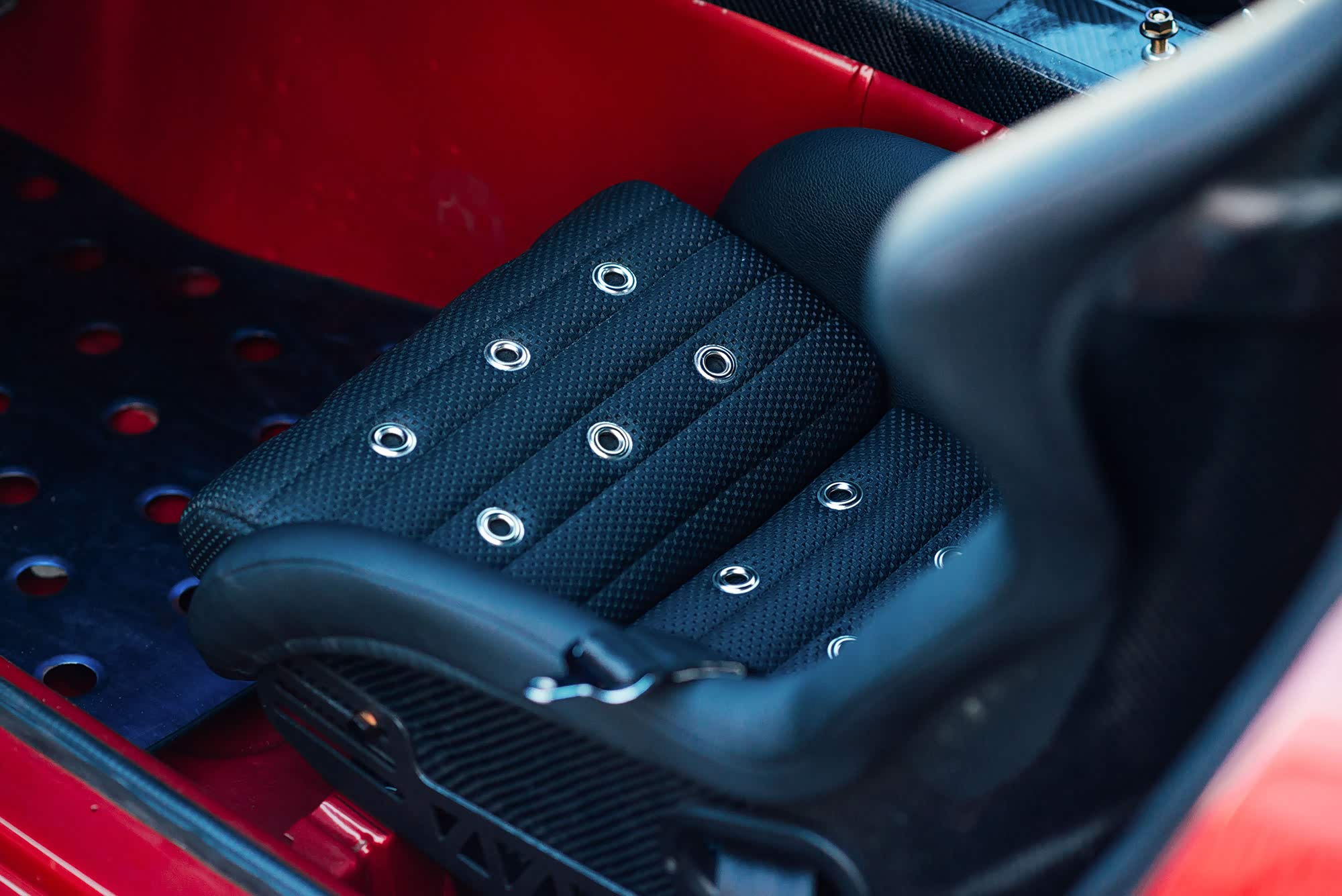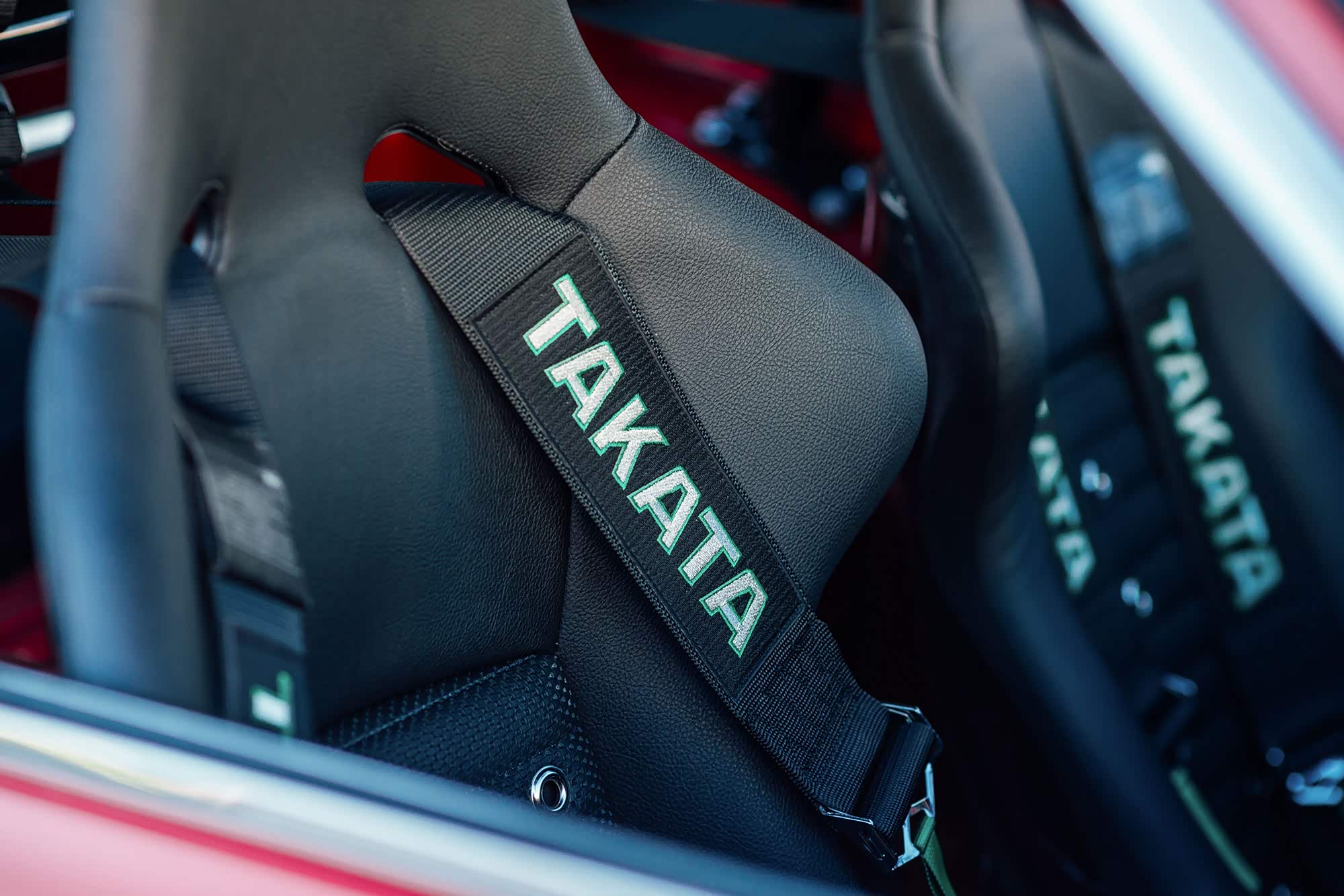 内饰拆空后,车主大面积使用了碳纤维的内饰覆盖件,加上定制的碳纤维桶椅与takata的赛车安全带,显得十分之战斗格!而最大的亮点,就是那定制的钛合金档把。外观与内饰,堪称完美的阐述了何谓"复古与现代的碰撞"!