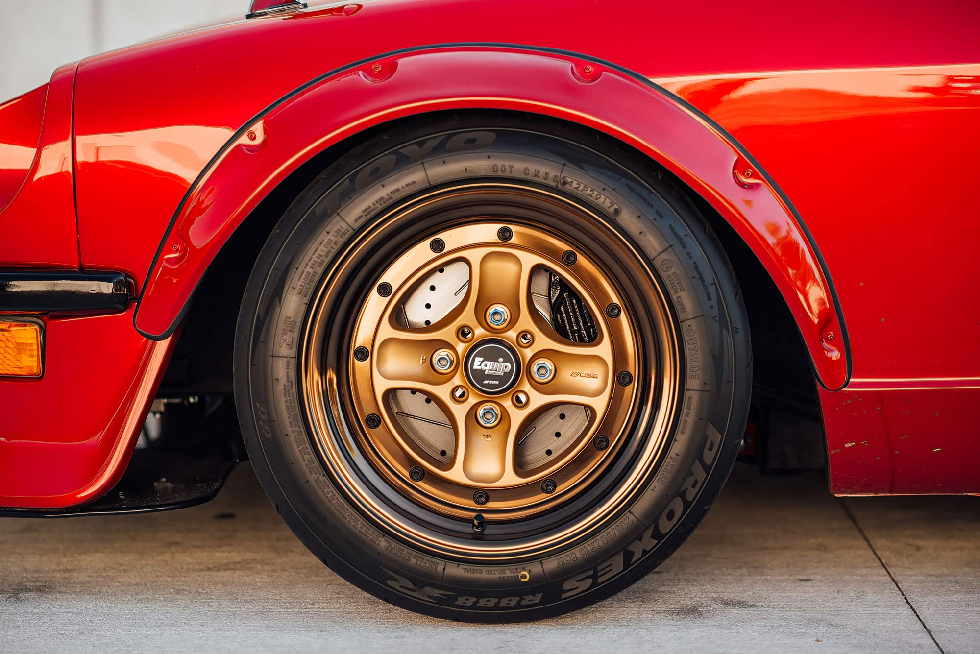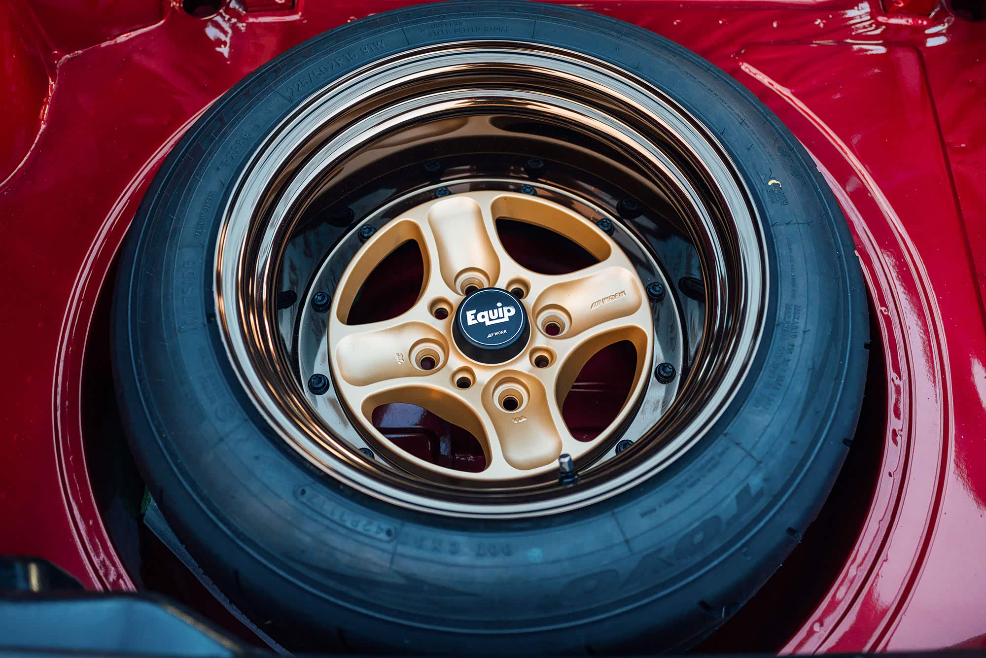 不过要说全车最有复古味的地方,那肯定是这套15寸前10J后11J的Work Equip 40s轮毂,小尺寸的轮毂配上Toyo R888R胖胖胎。再配上TRD的前四活塞卡钳加上打孔划线碟,显得非常饱满。