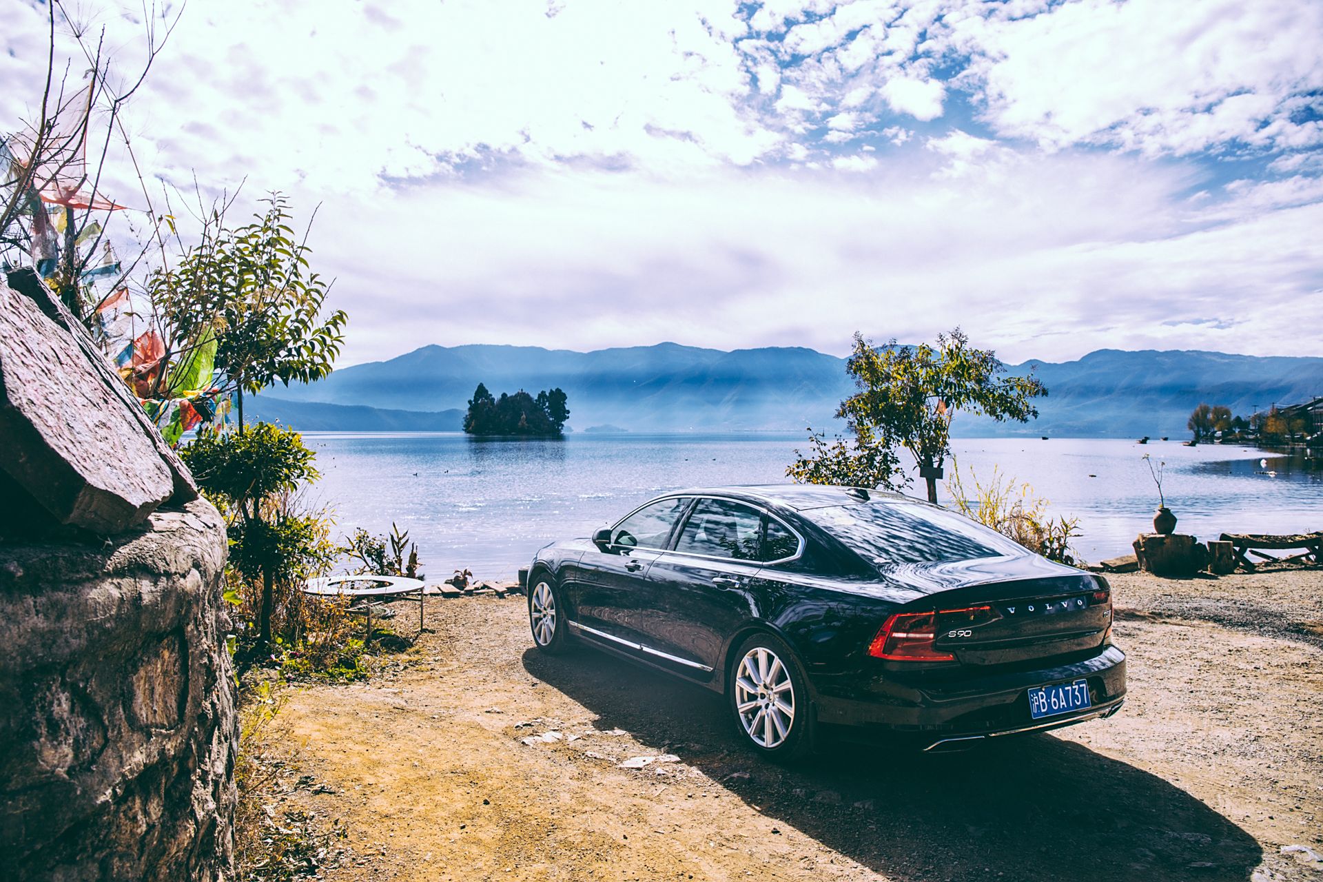 继续沿着公路盘旋下到湖边就进入了环湖路段,岔路口向左是泸沽湖最热闹的大落水方向,向右则是近几年新开发的蒗放方向。我们定的酒店是泸沽湖“网红”——且曼假日酒店,就位于蒗放。