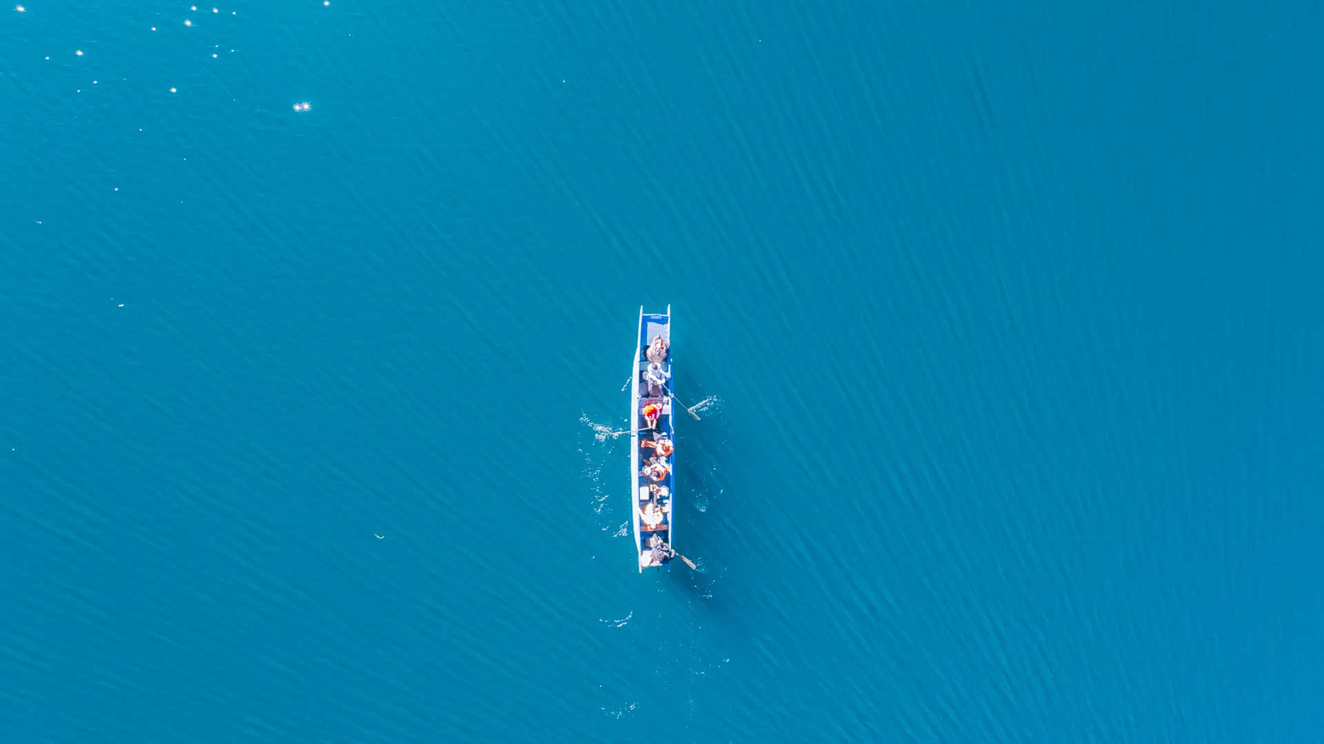 整个泸沽湖边都是这样的小木船我们也随大流包了一条船前往亲爱的客栈。划船的是三个年轻人,一女两男。上午十点,太阳正当头,一人掌舵,两人出力,一刻不停,很是辛苦。从蒗放码头到亲爱的客栈单程为1个小时左右。我们就有一搭没一搭地和这几个年轻人聊了起来。
