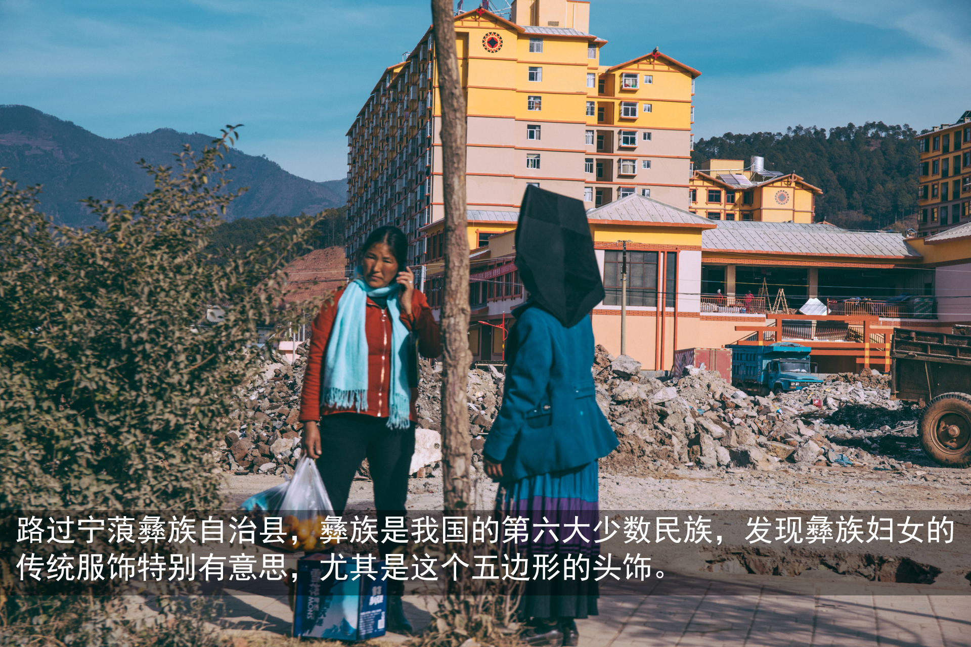 几乎每个来且曼住店的客人都会在这里打卡留念,也因为这处看似非常有意境的地方,让且曼一下子成了泸沽湖网红。不过呢,再附上一张照片背后的样子,你就会知道,照片和“照骗”其实就一步之遥。