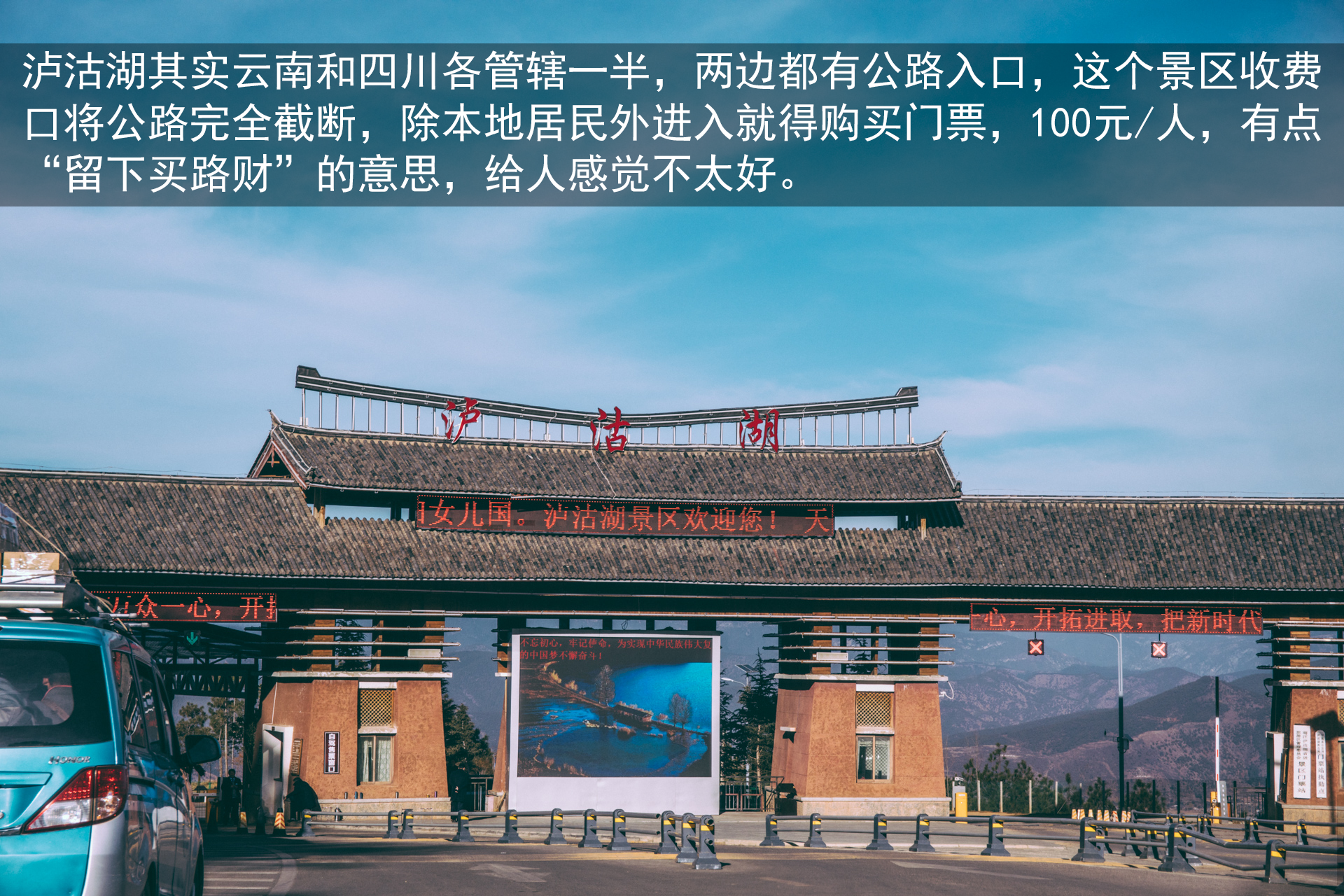泸沽湖景区实行的是封闭售票制度。景区入口处直接买票,100元/人。检票后就可以直接开车进入。