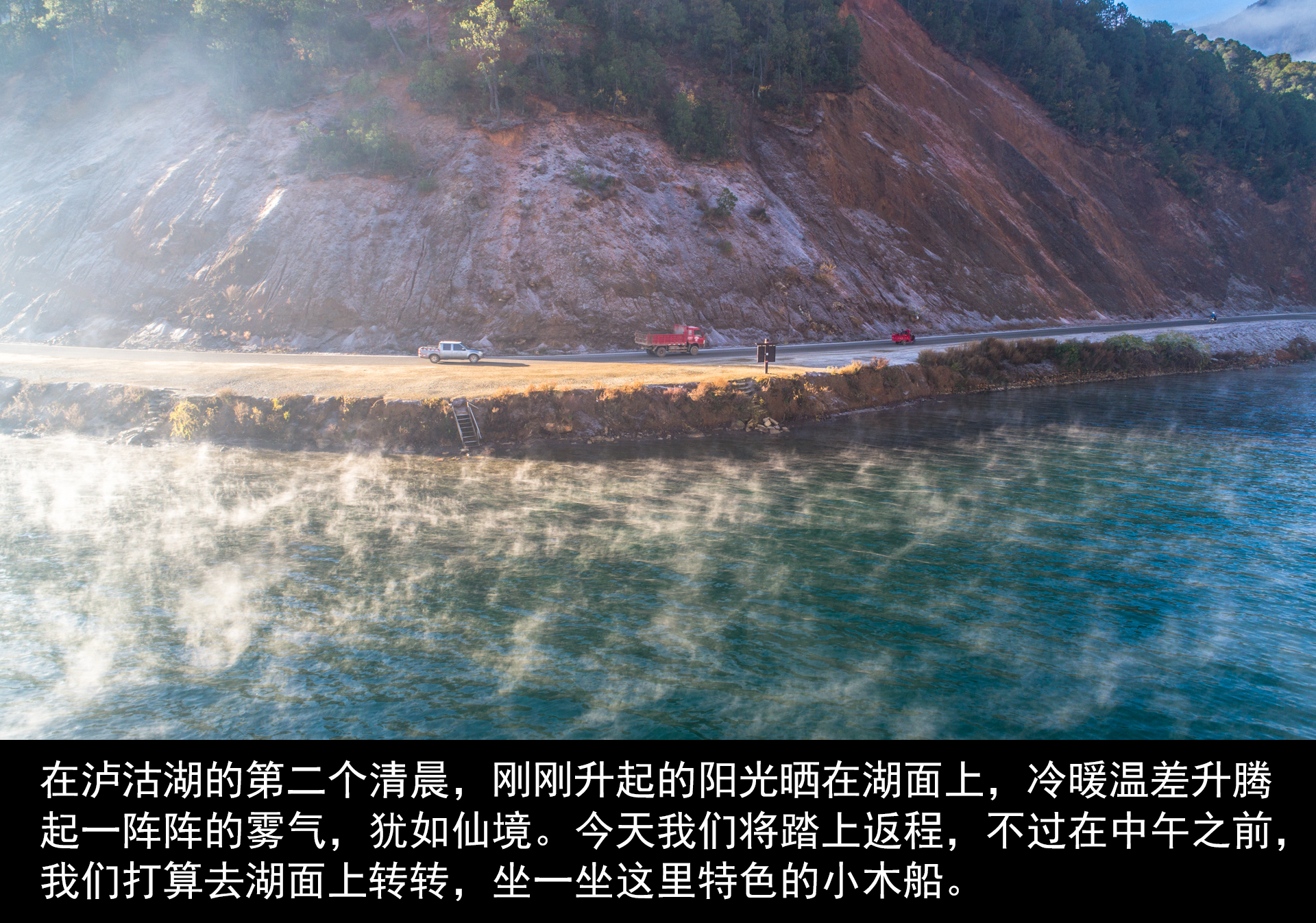 自驾肯定是比较自由又轻松的方式,而坐船游览又能更亲近泸沽湖面,我们于是选择了第一天环湖自驾,第二天一早再去坐船。两不耽误。
