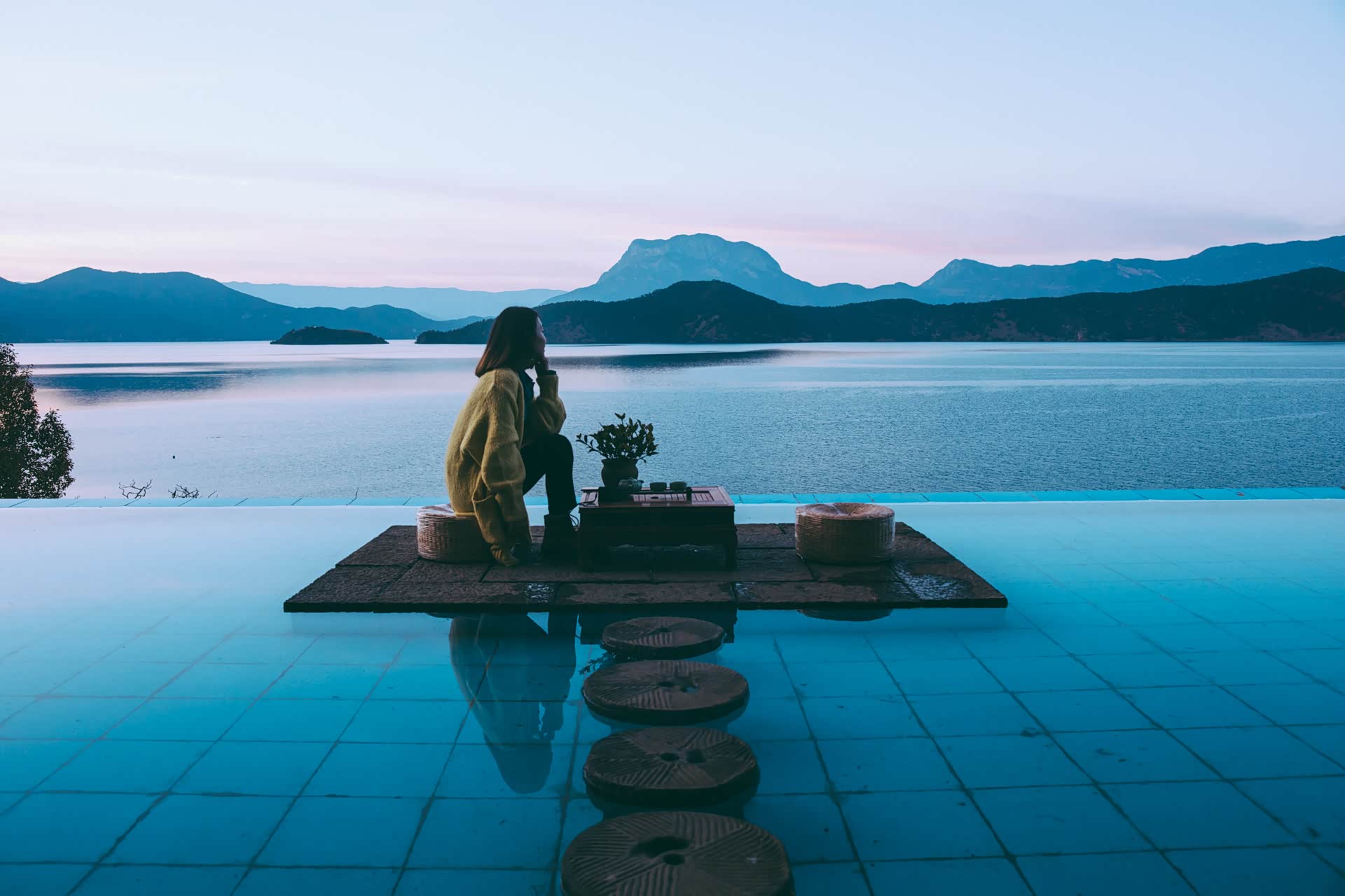 所谓意境,其实就是一方小小的台子听酒店老板娘介绍,原先来泸沽湖大多数人选择住在大落水,那里住宿、吃饭都相对成熟,但好的民宿不多,环境比较杂乱。现在蒗放这边开出很多新的民宿,住宿条件都比较好,这一片虽然周边娱乐餐饮比较少,但胜在清净,适合喜欢休闲、放空的游客。