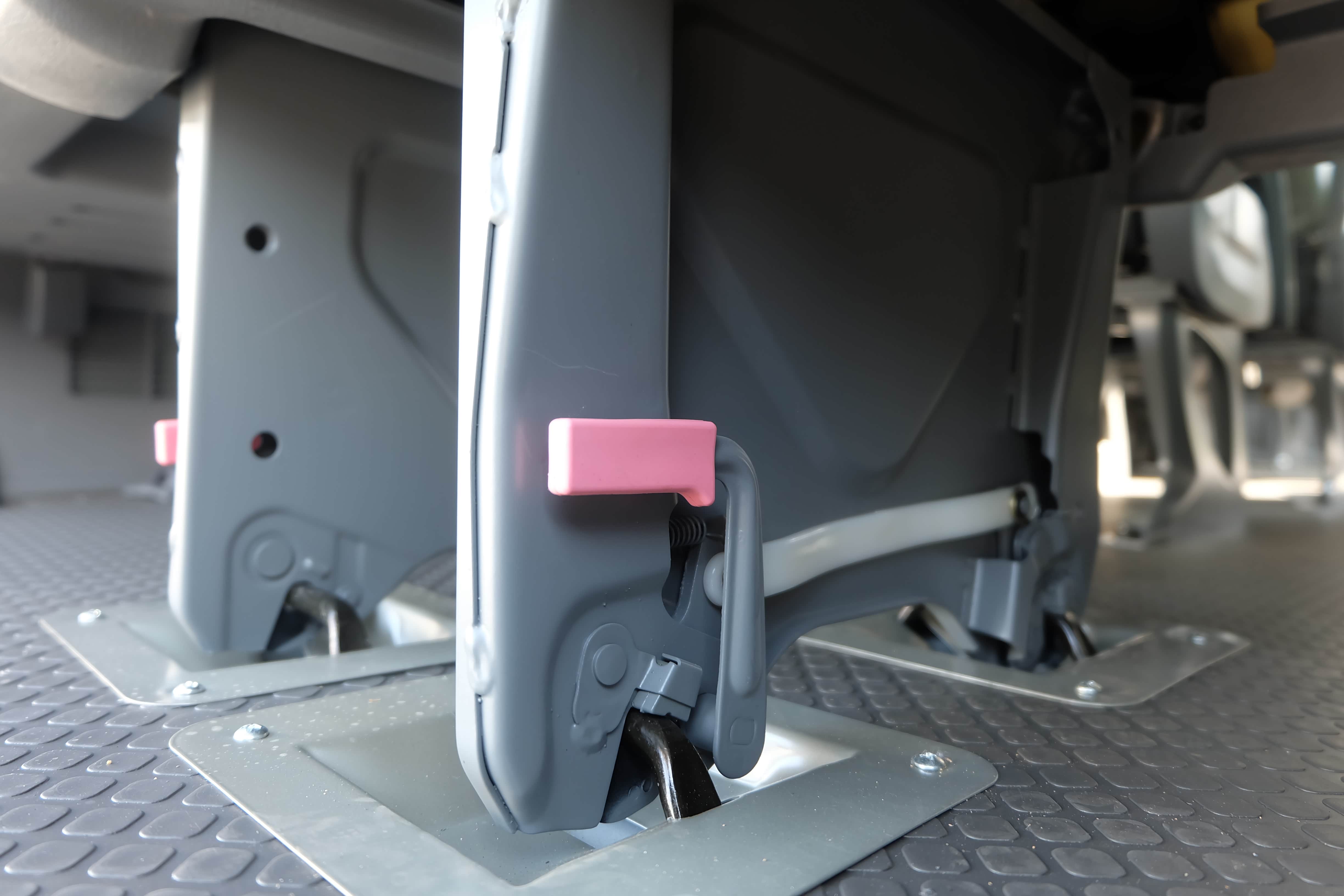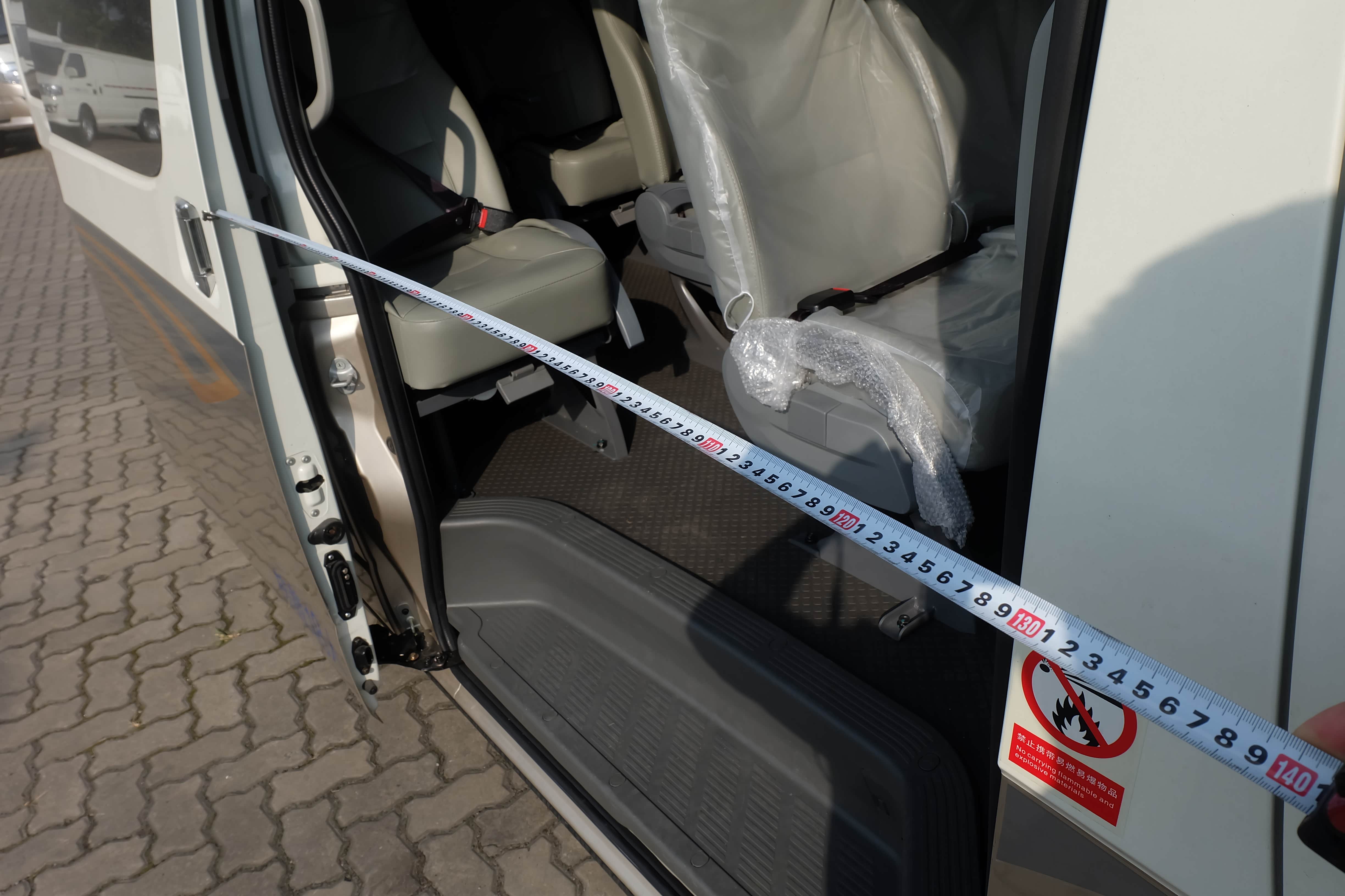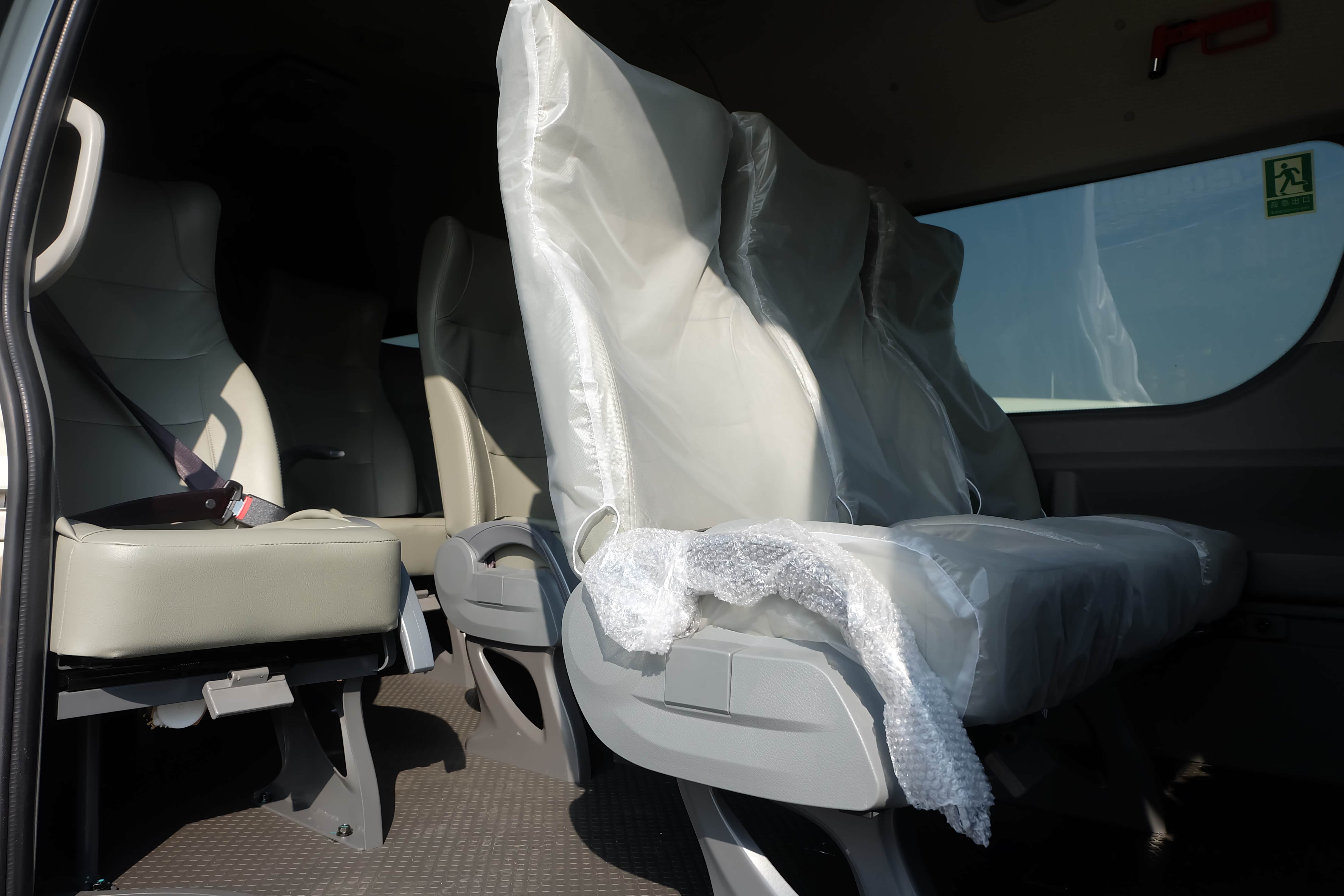仿皮材质座椅,带扶手同时可进行横向和靠背调节,保证乘坐的舒适性。针对营运市场,更提供小型中级(16座)和小型高一级(17座)的营运等级,适用营运行业。