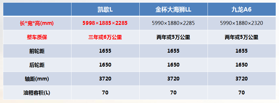 金龙大海狮整车尺寸为5998mm×1885mm×2285mm,轴距3720mm。和同级别车型保持一致。