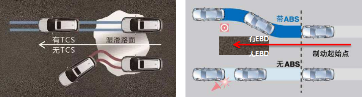 防抱死制动系统+制动力分配系统,车辆制动出现打滑时,可智能调节制动液压来调整轮胎输出扭力,配合制动系统创造最佳驱动力,提升行驶安全。