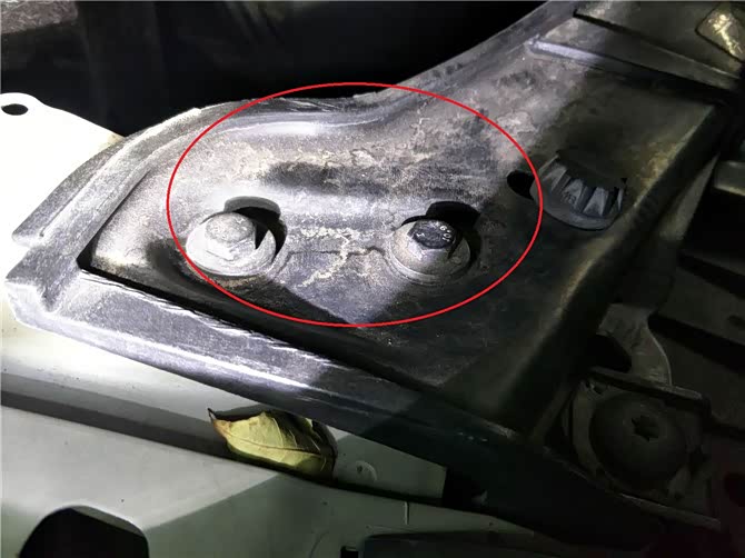 前悬挂下支臂没有螺丝拧动和拆卸痕迹,说明没有严重的托底和前部重大事故的发生。