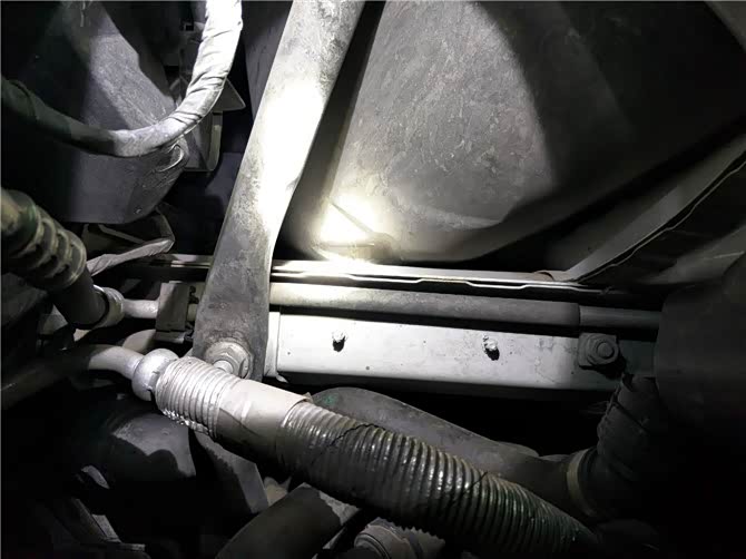 再检查纵梁,确认平直无褶皱,无钣金敲打痕迹,前防撞梁和纵梁连接处固定螺丝没有拆卸痕迹。安全结构件和外包围件都没有损伤,可排除车辆前部事故。