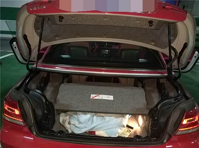 小编转到了后备箱后面,后备箱除了日常的一个储物功能外,还兼备着敞篷开启后放置的功能。
