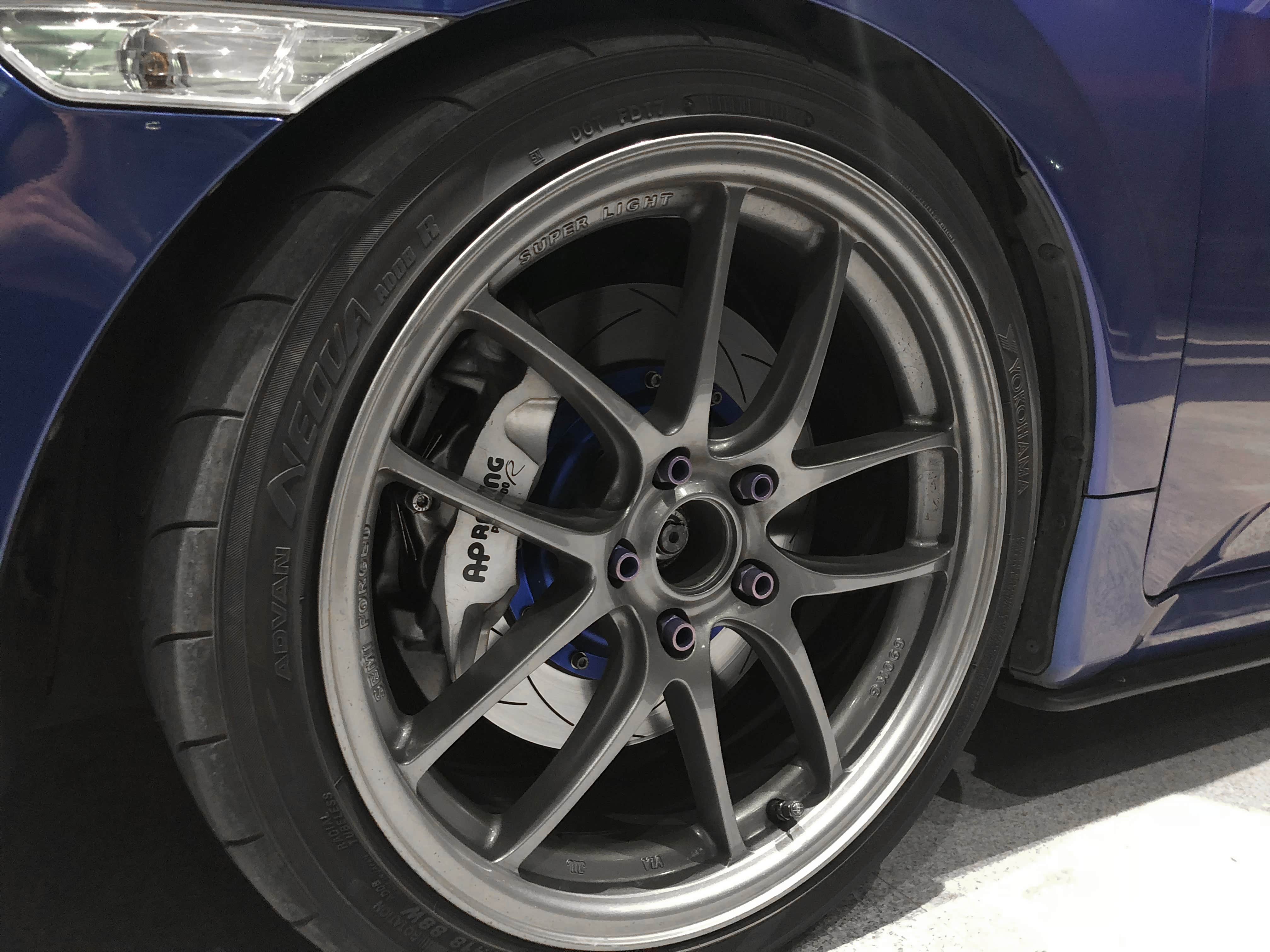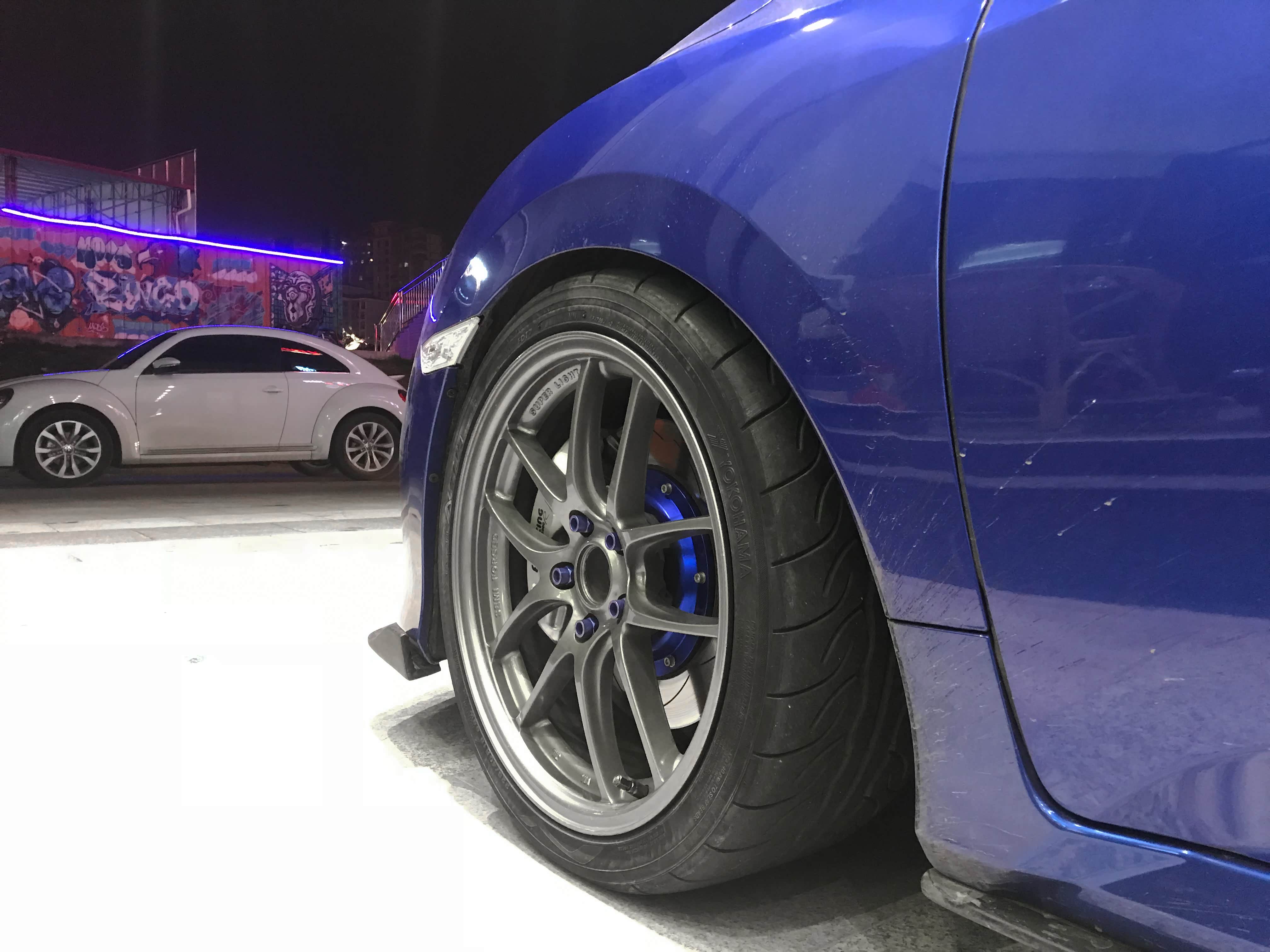 虽然原厂轮毂是17寸,但觉得造型以及重量方面,不是特别满意。开始非常纠结Atrka或者Enkei,后来朋友推荐还是Atrka,买了款低调风格的102型号,每个仅8.3kg,比起原厂减轻不少,在数据方面为了齐叶子板,定制了8.5J ET35数据。轮胎方面开始选择是PS4,后来受朋友影响,说买AD08陪他跑GIC,最后自己也没犹豫。