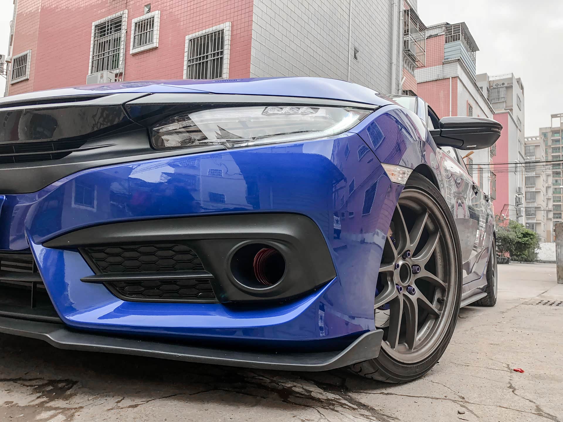 当时车主买这台车的时候,首先看中的是外观,确实够运动,另外还是来源于这车的改装潜力,因为喜欢加速度,喜欢开快车。"后来河源开思域的朋友就越来越多了,因为我这里是小城市,改装思域的并不多,可我非常喜欢改装。加入了当地车友群,一起探讨了改装以及车的东西。"