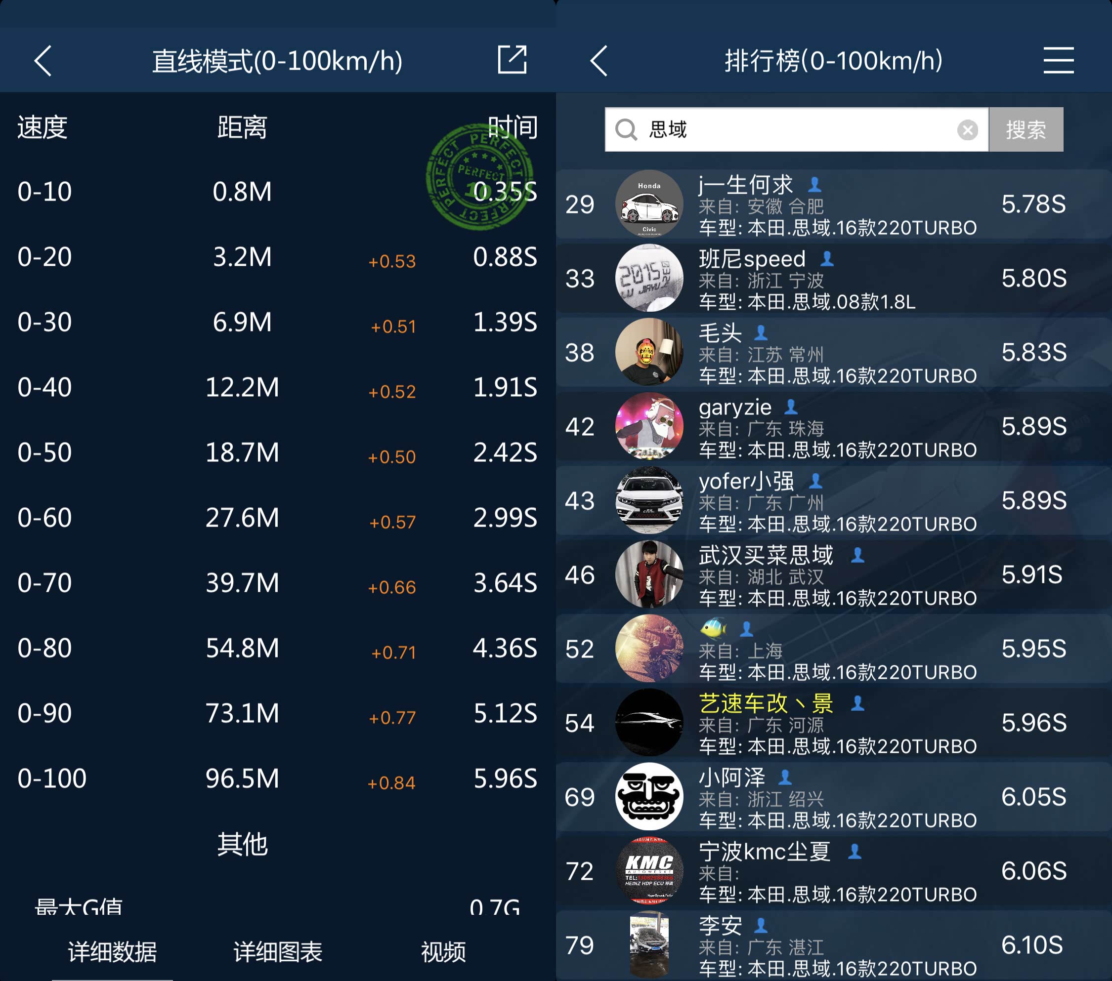 习惯了新的一次改变就来一次测速。基本都是一个去,每次突破0.2秒都是欣喜若狂,可以开心好几天。后来非常有目的性,一定要突破6秒大关,就把Racechip进一步调配,如今马力大概在280匹,轮上200匹左右,最大扭矩310牛米。