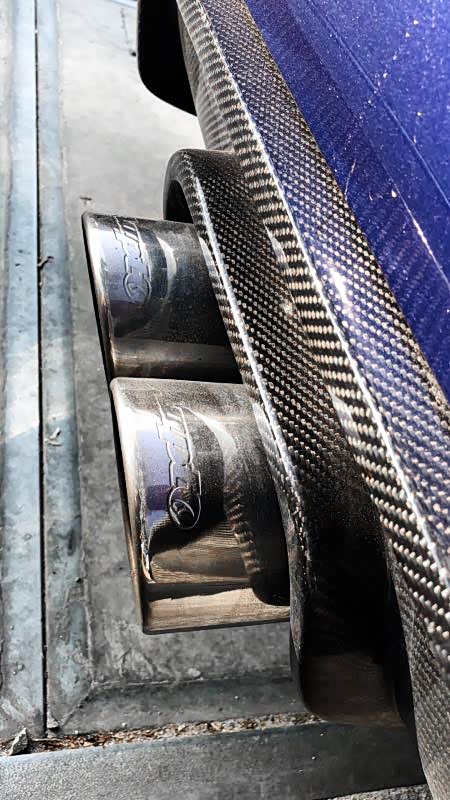 接着,排气也要跟上了,换了全段排气。头段采用200目的芒果,加上AUPTO的中尾阀门,果然,在提速方面有非常大的提升。由于是中出排气,就选择了碳纤维护角款的尾唇,特别个性!不喜欢有镀铬的地方,于是门窗的镀铬让我给贴黑了。中网、门把手以及logo都更换成碳纤维,这样更加运动。