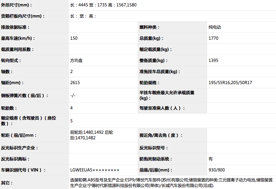 【长城全新子品牌欧拉曝光!或主打新能源领域!】长城公布了旗下全新子品牌欧拉,首款车是一款纯电动汽车iQ5,不过从图片来看,最小离地间隙还是挺高的,而且C柱与车尾的设计也比较个性,算的上是跨界了。iQ5前脸由于不需要进气格栅,所以采用了大面积的封闭结构,大灯狭长,通过中部的黑色饰板相连。而且位于圆形Logo下方的应该是充电接口。车尾设计似曾相识,行李厢盖上的黑色饰板很显眼,同时还贴有ORA品牌标识。车身尺寸为4445mm/1735mm/1567(带行李架为1580mm)mm,轴距为2615mm。车轮胎规格为195/55 R16或205/50 R17,并提供两种样式的轮圈选择。动力方面,欧拉iQ5搭载了三元锂离子电池,电动机最大马力为163匹。这款车预计将于今年北京车展与大家见面。