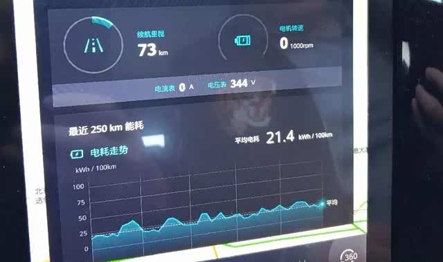 测试过程中可以看到,开空调的状态平均电耗是21.4kWh/100km,如果按照48.3 kWh的电池组来计算,应该大概可以跑256km,这只是我们预估的结果,具体还是要等测试结束得出。