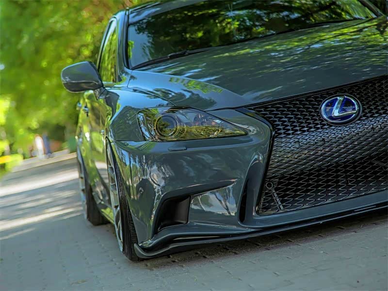 前9.5J后10.5J的轮圈数据加上ACCUAIR的气动控制才达成了这个姿态。外观改色是来自法国HEXIS的水泥灰贴膜,这辆雷克萨斯恐怕已经引领了水泥灰这个色系的一个小风潮。