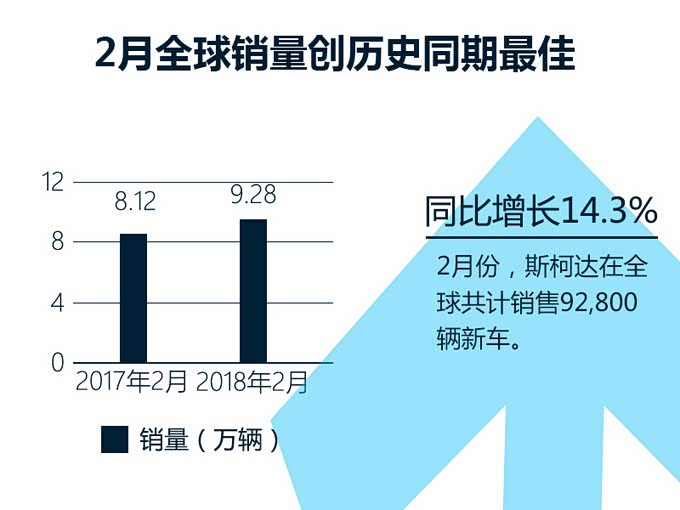 3月14日,斯柯达官方公布了最新销量数据:斯柯达2月全球共计交付新车92,800辆,同比增长14.3%,创下了品牌成立123年历史同期的最高纪录。作为斯柯达全球最大单一市场的中国,2月累计销售19,600辆新车,同比劲增30.6%。而在欧洲三大市场,斯柯达2月销量表现“全面开花”,均实现增长。接下来,斯柯达将在中国市场开启SUV产品攻势,投放柯珞克以及柯米克等多款新车,挑战更高销量目标。